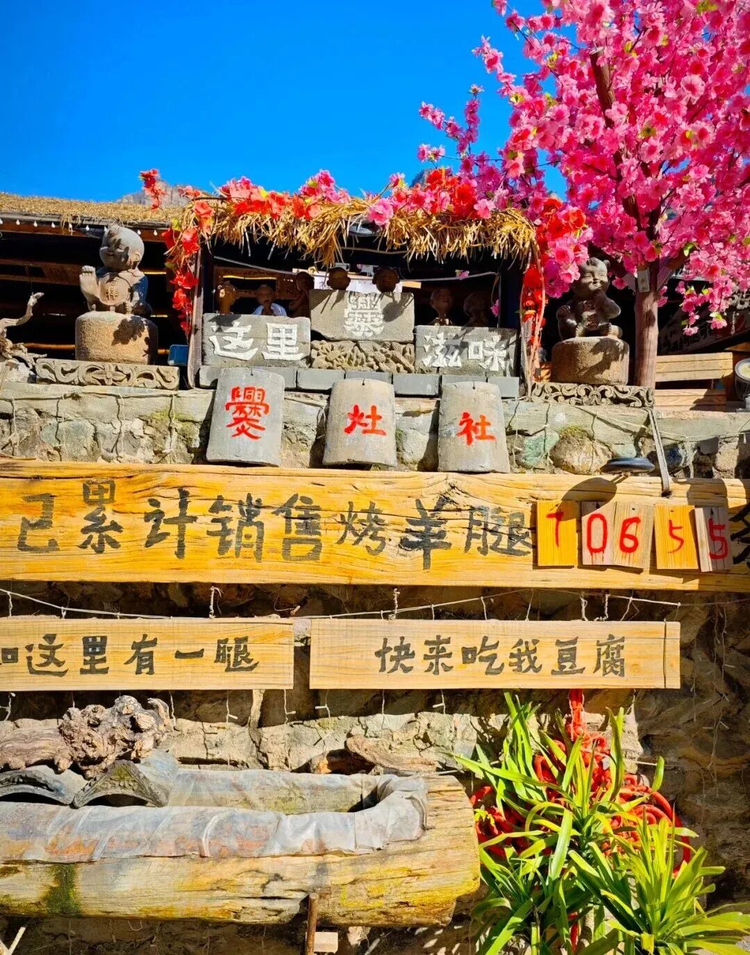 吴冠中先生于1986年在爨底下村写生时,称爨底下村是“北方民居的周口店”,“仿佛从火山灰里扒出来的意大利庞贝古城”。春之韵味,莫过于古村落,一幅幅油画,绚烂而有诗意。片石砖木,烟火人家,都是乡愁的滋味,石墙青瓦,古木参天,各色果树与山水建筑形成一幅绝美画卷。