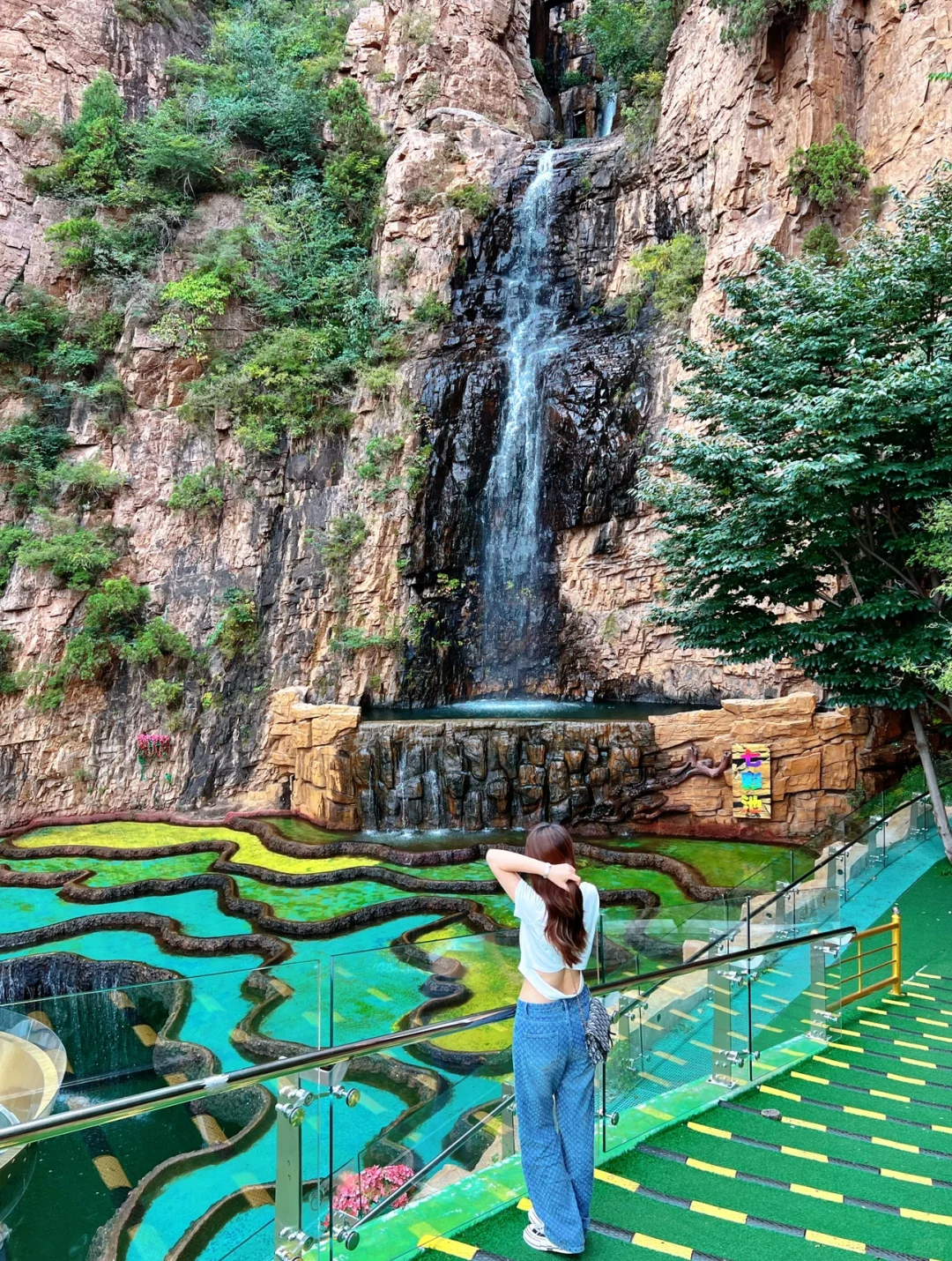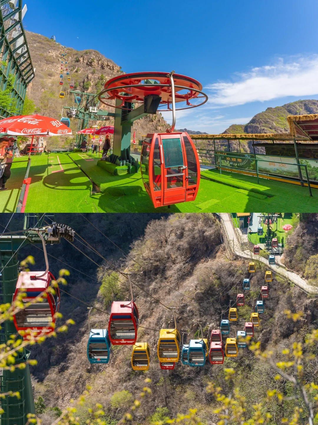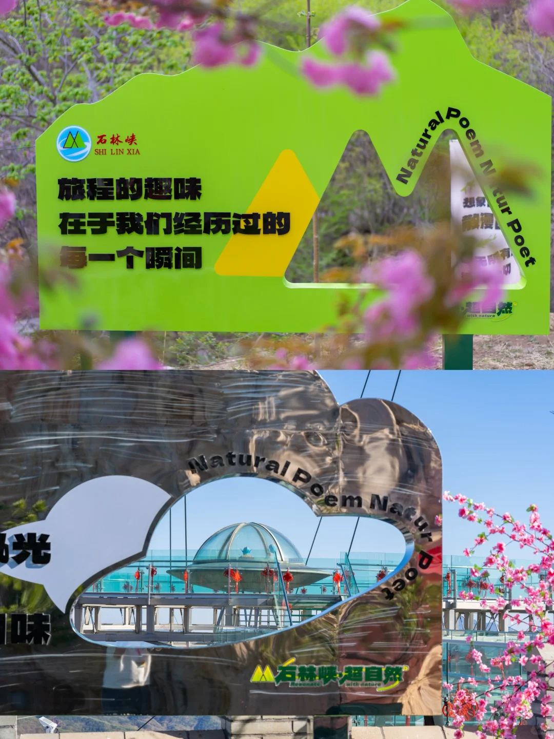 特色广告牌和海报到处都是【石林峡·超自然】的打卡点,缆车等候的广告牌和沿途看到路边的走心文案海报,以自然的状态传递人与自然和谐发展的态度。