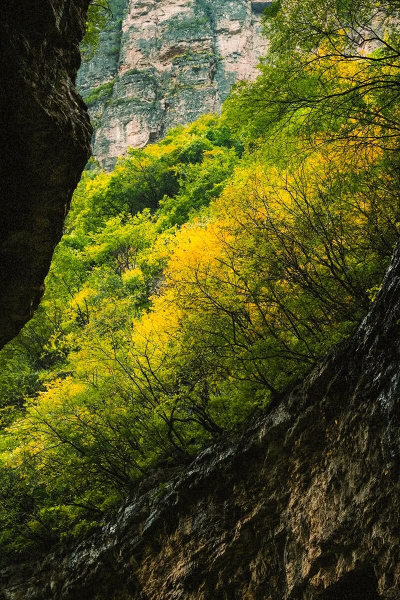 涧谷蜿蜒曲折,曲径通幽;峻岭迤逦、群山叠翠、奇峰异洞、碧草清泉;构成龙门涧“奇异的画廊”,尽显大自然之奇妙、鬼斧之神功。春季,群山滴翠。