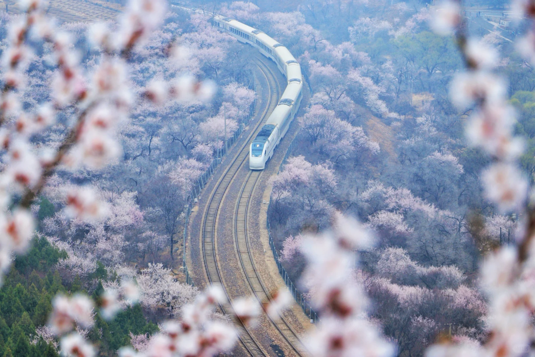 这就是被称作开往春天的列车的S2线,一路上你能看到漫山遍野的山桃山杏花,沿着京张铁路,感受着人字形的曲折迂回,灵魂在这短暂的旅途中会得到进一步升华!这趟开往春天的花海列车一定是这个春天最美的邂逅。
