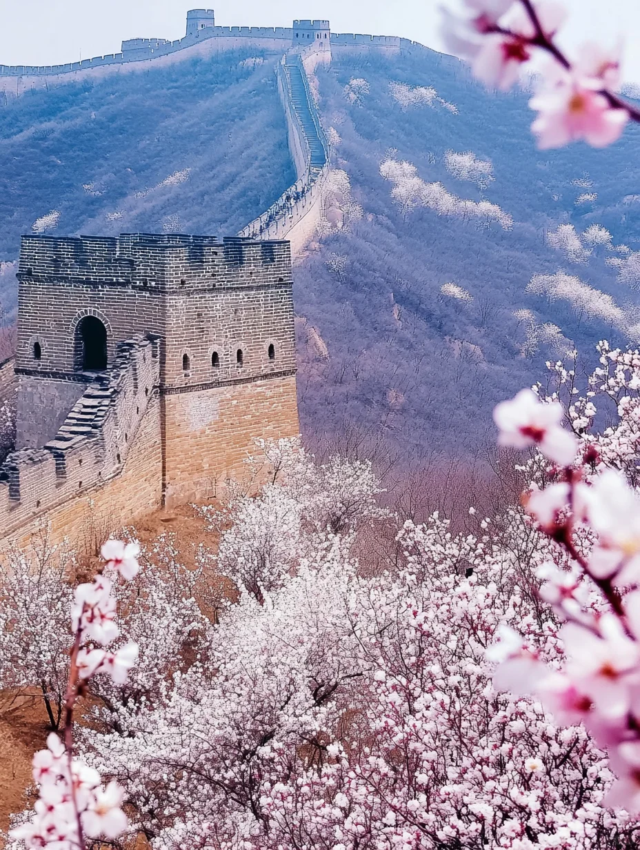 一辆辆白色的列车在花海中穿行它不仅仅是开往春天更是开往希望开往美好的未来- 居庸关长城 - 春当时,桃花、杏花、樱花逐渐进入怒放期……