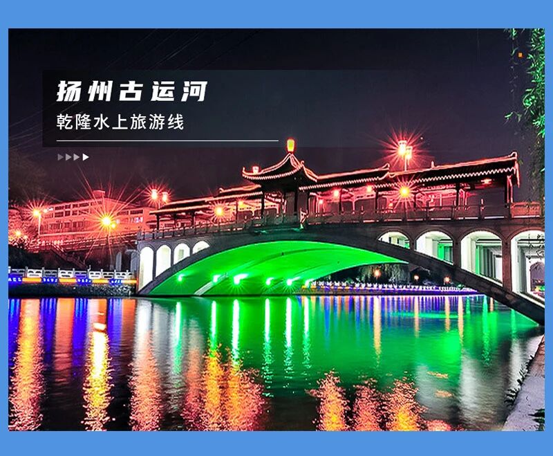 - 你还可以自由结伴前去游览古运河,夜色下的古运河在灯光的照耀下显得那么安详、宁静,看着风景真的是不错的选择!古运河扬州段是整个运河中最古老的一段。这一段运河最为古老,可谓历史遗迹星列、人文景观众多。乘坐游船沿着“乾隆水上旅游线”悠悠地向蜀岗瘦西湖风景区荡去,领略扬州夜色。那一幕幕美丽的风光不时出现在游客的面前,美丽的古运河风光,秀丽的古城,在越来越宽阔的水面上尽显它的美丽。