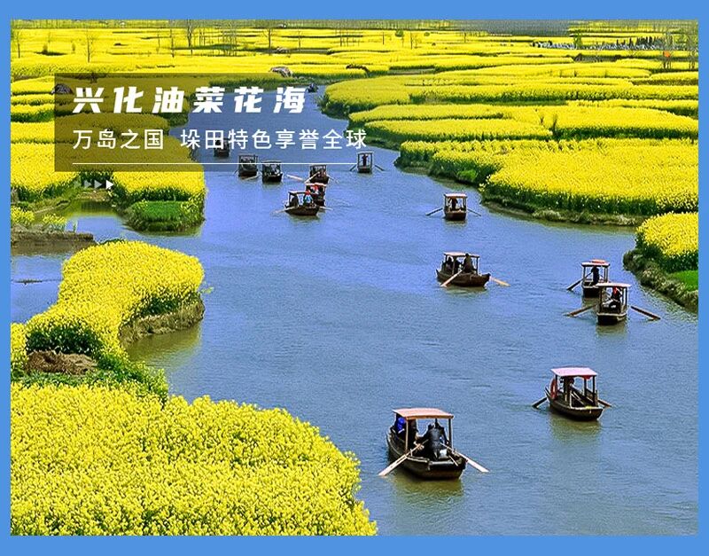 - 上午|我们乘坐巴士前往兴化,欣赏沿路江南水乡的风景,我们首先游览千岛油菜花海。