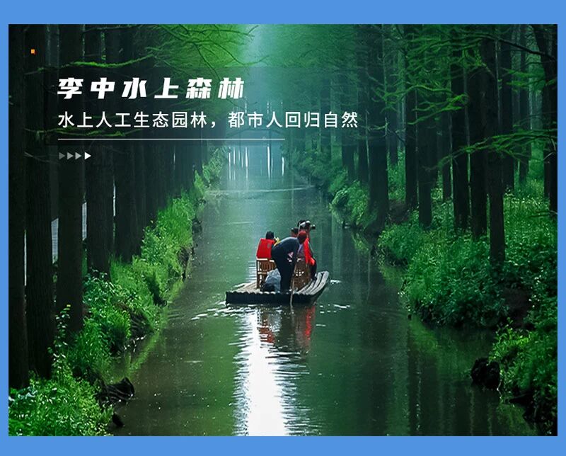 - 下午|游玩李中水上森林,可以乘竹筏穿越水上森林,也可以悠闲地沿湖徒步。