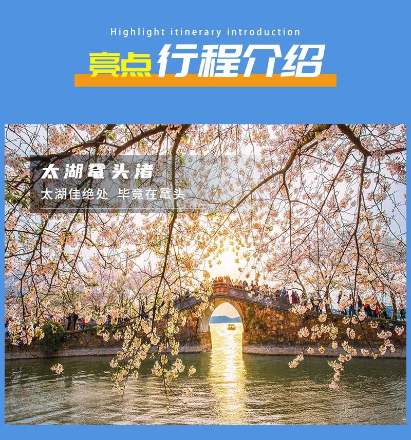 - 上午我们就在鼋头渚游览,这里被人称为“中华第一赏樱胜地”,我们可以坐游船游览这太湖西岸的美景,也可以在花海中漫步,看鼋头渚牌坊、看长春花漪、海峡友好石碑...每年的清明前后,这里的万千樱花竞相开放,春风微抚,樱花瓣漫天飞舞,给人一种进入漫画中的错觉。美女们可以穿些古装,或者带着粉嫩色系的丝巾进去拍照,一定很美。