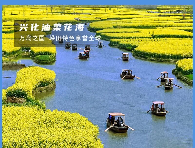- 上午|我们乘坐巴士前往兴化,欣赏沿路江南水乡的风景,我们首先游览千岛油菜花海。