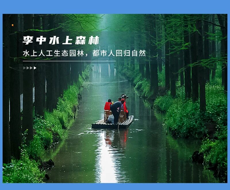 - 下午|游玩李中水上森林,可以乘竹筏穿越水上森林,也可以悠闲地沿湖徒步。