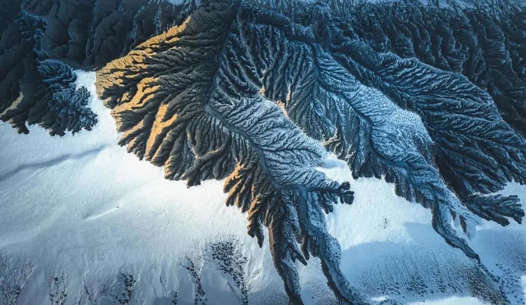 早上用完早餐后,前往独山子大峡谷,拥有“独库秘境,亿年奇观”之称的独山子大峡谷位于独山子区境内,水冲出天山后,切割独山子西南方向倾斜平原形成的神奇风光峡谷,峡谷两岸的阶地很是壮观,天山雪水及雨水流下来经过这里的土壤形成的冲积沟壑,在谷壁雕凿出这些奇特景观。,3,4月份的独山子大地,放眼望去一派银装素裹,站立在高处远山雪域尽收眼底。峡谷地貌纵横交错,黑白双煞,似人工雕塑,似上苍穹变。雪,只有雪才能让峡谷变迁万像,美轮美奂,从200米的高空俯瞰雪域峡谷万物有灵,给人以不一样的视觉盛宴。
