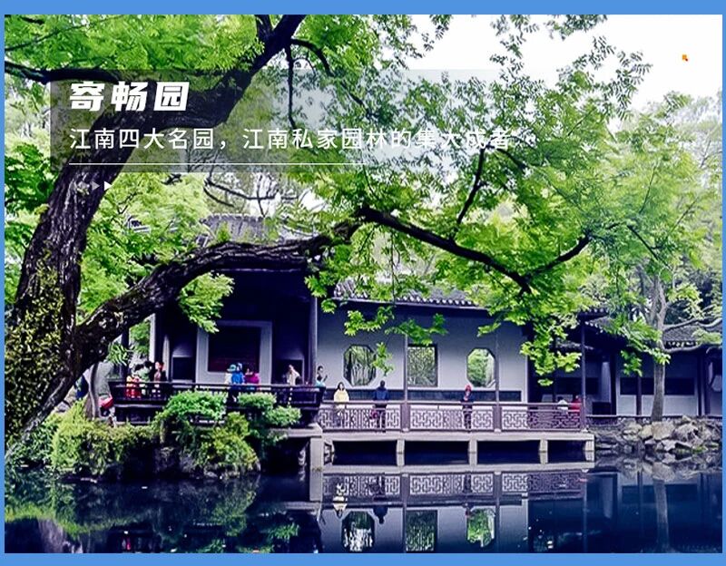 - 下午游览寄畅园,北京颐和园和圆明园也都是仿造这里的【寄畅园】而建的,我们细细游玩这座江南四大名园中最有故事的一座园林,欣赏藏在古镇中的山林野趣。