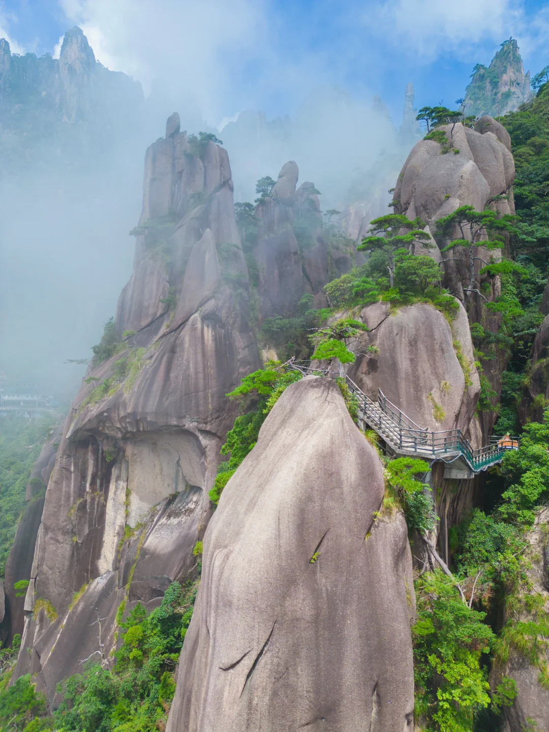 D2|三清山-望仙谷夜景-上饶/德兴(宿)- 早餐后我们游览三清山『三清山』兼具“泰山之雄伟、黄山之奇秀、华山之险峻、衡山之烟云、青城之清幽”。“奇峰怪石、古树名花、流泉飞瀑、云海雾涛”并称自然四绝。三清山也是道教名山,山上的三清宫香火十分旺盛。在偌大的三清山中,你可以乘缆车尽赏山间美景,行走栈道,看松林阵阵,云雾霭霭。早可看日出,夕可赏晚霞,待薄雾起时,身处深山里,还真有那么些仙山的意味。-下午适时集合前往『望仙谷』欣赏夜景。夜幕下的望仙谷处处灯火通明,古塔熠熠生辉,璀璨夺目,与五光十色的古街交相辉映,堪比丽江古城。空中俯瞰,整个山谷流光溢彩,灿若星河。在望仙谷沉浸式玩闹撒欢,满足大小朋友对美景的期待,夜晚,欣赏望仙谷景区迷人夜景,还有景区精心准备的灯光秀,感受传统文化的魅力。赶快约上好友一起来望仙谷景区,开启属于你的狂欢之旅吧!- 适时集合前往酒店住宿。D3|上饶-景德镇陶溪川-瑶里古镇-九江- 早餐后我们前往『景德镇陶溪川』打卡游览。陶溪川是一个陶瓷文化创意产业园区,这里适合文艺青年,园区的每个店子都特别文艺,从店名到外墙到内部装饰,在这里都不敢说自己是文艺青年……在创意园里能拍出很有50年代风格的照片,来往的人,配上标语,有一种旧时部队征兵的感觉,广场上的建筑非常精美,带点欧式风格。- 适时集合前往『瑶里古镇』游览。瑶里古镇,是景德镇陶瓷发祥地。有“瓷之源、茶之乡、林之海”美称,是国家历史文化名镇。这里群山环抱, 原始森林郁郁幽深,小桥流水、禽鸟啼鸣、飞瀑流泉、是避暑的佳处。村镇大量清代名居,明清商业街是古徽州大道上最为繁华的商业街之一,还有古桥、古码头等。- 适时集合返程前往九江火车站,约19:30到达九江火车站解散,大家根据自己的车次准时登车返程,愉快行程结束。用餐:早餐有/午餐无/晚餐无住宿:无