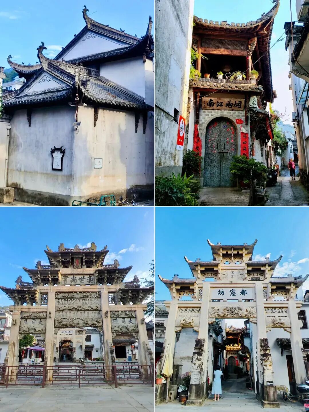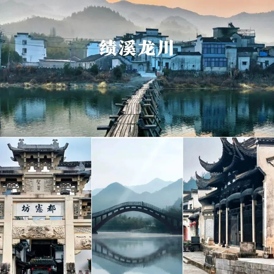 整个龙川景区不大,一条水街穿村而过,祠堂、牌坊、古桥分立在水街两旁。🔷从高处俯瞰,整个龙川村形似一条龙舟,呈一叶扁舟形,又有“船形村”之称。🔷龙川水街两岸是传统徽派建筑群—宗祠、牌坊、名人故居保存完好,差不多2小时就能走完。🔷村口的石拱桥、村尾的石板桥,村中间村民日常往来的木头桥,拍照打卡非常出片。🔷沿着河堤一直走,走到村外,有一座横跨登源河的狭长木桥也很出片。