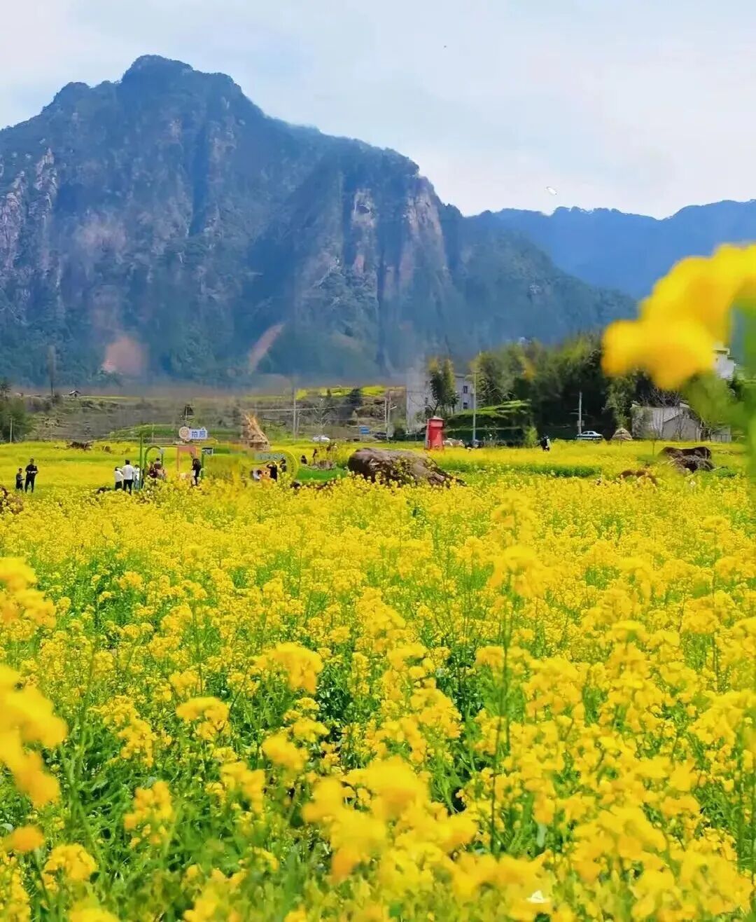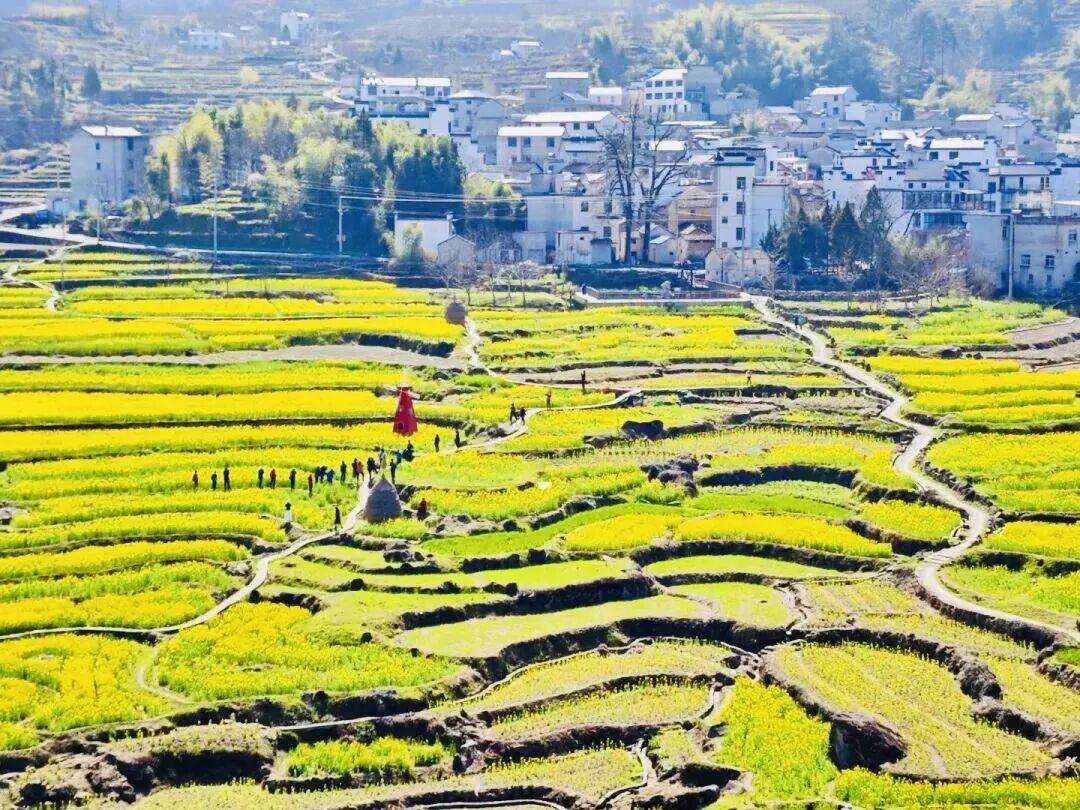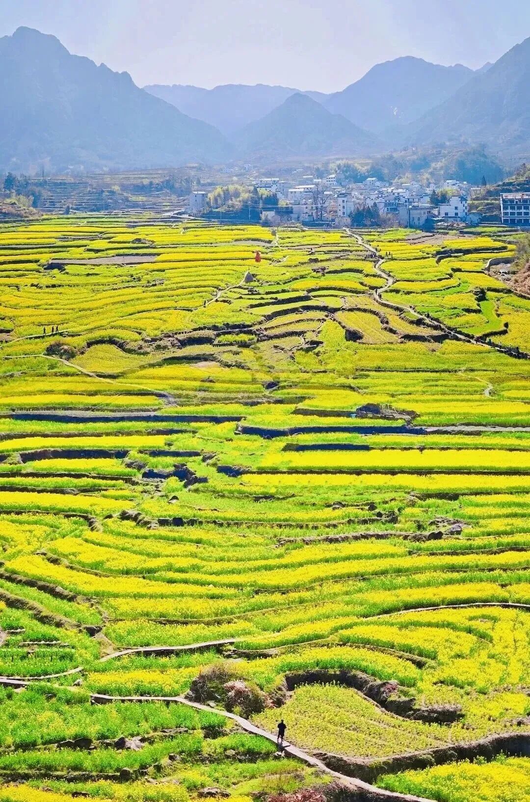 梅圩岭油菜花 | 这仙气有点太浓,安徽宣城绩溪家朋的油菜花海以梯田形态存在,铺展在家朋坎头古村落往南的整片大面积山坡地上,而在坡地的东侧,是一片巨大高耸的岩石屏障,有些皖南“扎尕那”的感觉。