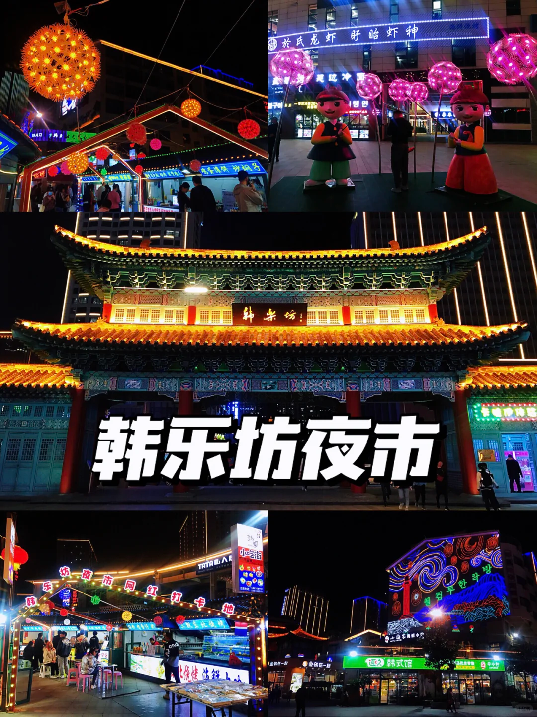 韩乐坊不夜城 威海旅行时尚潮流打卡地,年轻人的嗨乐街区,韩乐坊🇰🇷韩国风情美食夜市,到了夜晚很是热闹餐馆食肆林立,南北小吃汇集与其他城市的美食街大同小异。还有网红墙供打卡~