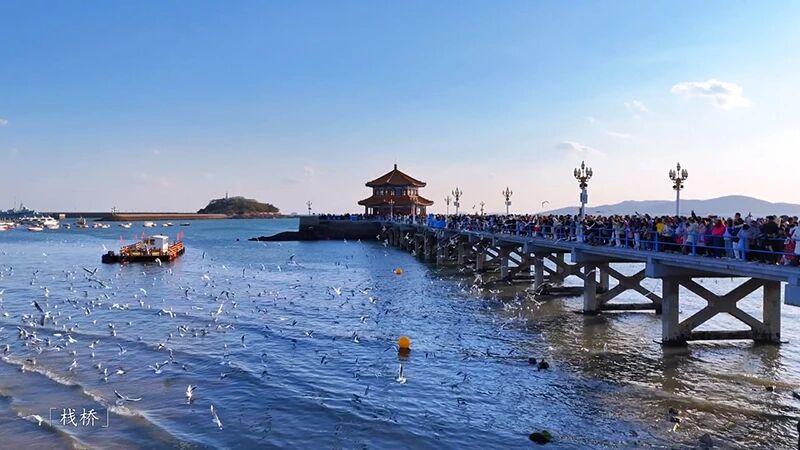 青岛栈桥始建于清光绪十八年,是青岛最早的军事专用人工码头建筑,现在是青岛的重要标志性建筑物和著名风景游览点。