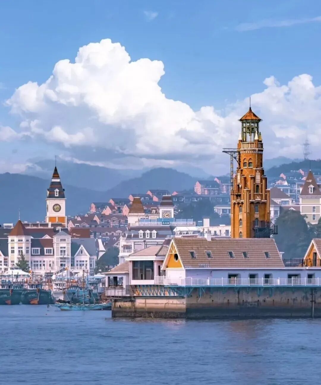 大连老虎滩渔人码头电影感十足的码头小镇,将欧式建筑和渔村的市井相融合,码头停靠着许多小木船和老旧的灯塔,而在此基础之上,建了多个色彩鲜明很像威尼斯式的彩色小房子,以及各种雕塑,小资意味相当浓厚。渔人码头没有门票,位于滨海路虎滩渔港内,东西山体对望,面朝大海,景色也是很美的。只是东西480米,南北500米略小了一些。但是浓浓的混搭风,还是让人心旷神怡的。