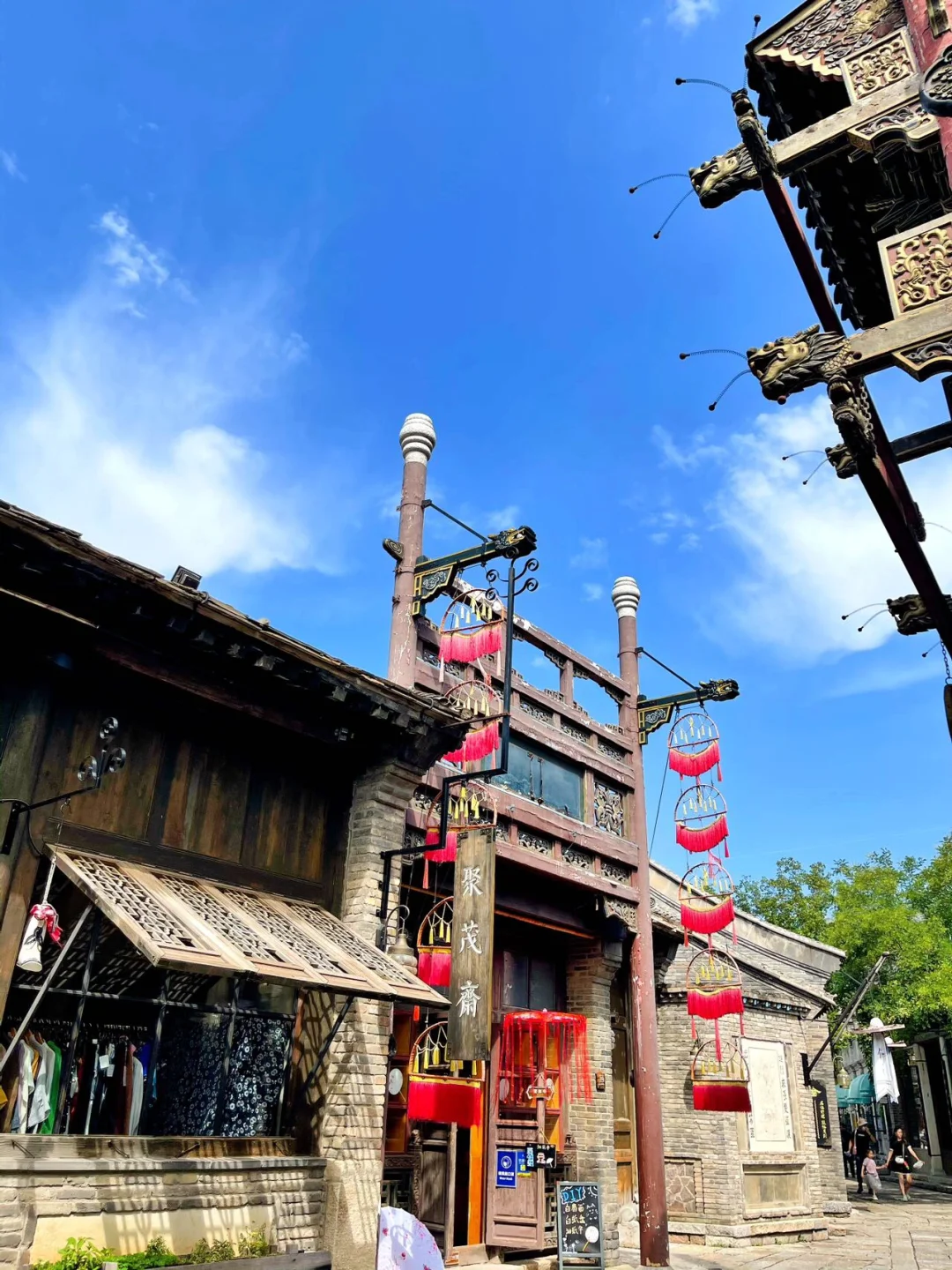 皮影戏馆:看一场皮影戏,感受传统文化。圆通塔:祈福静心,体验佛教文化。月老祠:单身必打卡,祈求美好姻缘。英华书院:沉浸在诗书氛围中,体验古代书院文化。山顶教堂:浪漫落日守候点,俯瞰古镇美景。杨无敌祠戏台:了解杨家将故事,欣赏戏曲表演。日月潭广场: 拍照圣地,无人机孔明灯秀惊艳夜空。八旗会馆:租赁满族宫廷服饰,体验射箭活动。镇远镖局:了解古代镖局运作,体验江湖豪情。