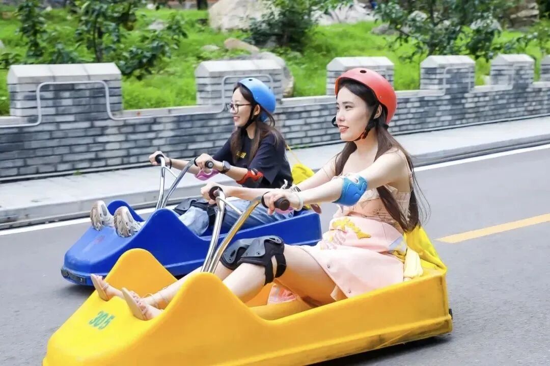 山地滑车—人生总得当一次秋名山车神吧!秋名山车神,来自日漫《头文字D》,每每看到剧中主角飙车的镜头,都会肾上腺素飙升,恨不得当下就去飙飙车。但在现实中,我们不可能在山路上玩这么危险的赛车游戏,而在冶仙塔则可以实现这个愿望。