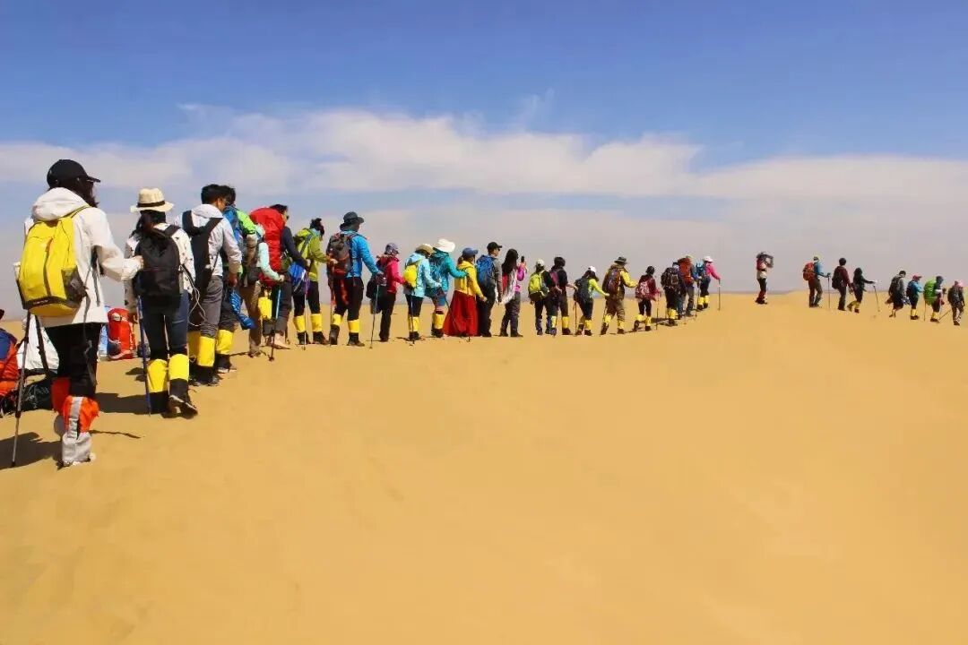 ▌ 装备要求1、休闲或速干衣裤(沙漠夜间温差较大,建议带厚外套,抓绒或羽绒服)运动或登山鞋、雪套,双肩包、头灯或手电必带一样,手套、帽子、雨衣、太阳镜、防晒霜;2、帐篷、睡袋、登山包、饮用水2L以上,自备蔬菜水果或者自制特色食品;3、手机、相机、公交卡、手台有就带上;4、个人常用药品,创口贴、止泻药、晕车药、感冒药、藿香正气水等;5、注意环保,爱护环境,安全第一,全部垃圾要带出活动区域送至垃圾回收站,强调团队精神,互帮互助,助人为乐;提示:以上仅供参考,出行游玩一定要随身携带身份证,根据季节的不同装备也会有不同的准备,具体可咨询领队;▌ 沙漠徒步注意事项1)真正意义上的沙漠定点徒步穿越,让队员亲自走进沙漠,在感受大漠风光、感受变换莫测气候的同时,对队员身体上和心理上都是个很好的考验过程。2)着装:沙漠气温比较炎热,晴天白天气温30度左右,晚上气温在零下5度左右。所以着装搭配建议根据自身状况做好保暖,防晒,防寒工作。为了防止脚起泡,创可贴,发现脚有不舒服的部位赶紧贴上,袜子也要换成专业徒步加厚袜子。3)沙尘暴:库布齐沙漠的沙尘暴发生的概率极低,即使发生强度也不会很大,所以并不会带来危险,而且沙尘并不耽误人的正常行走,只是行军速度会减慢。遇到沙尘时带上防风镜、口罩、头巾,在凉爽的沙尘里行军也是一种独特的享受。4)如何控制自己的饮水量:在野外环境,每个人的耐渴程度不一样,在你出发前两天就开始大量饮水,让身体储存足够的水份。进入沙漠后,背包行走,尤其接近中午前后,身体会大量出汗,这个时候你就要特别注意,一定要定时饮水,每次饮水不要超过100毫升,20-30分钟饮水一次。一般早晨行走1个小时侯后开始饮水,中午路餐用水控制在400-500毫升,在行走时要定时定量饮水,不宜一次大量补充。5)行走时的团队意识:强调团队精神,互帮互助,助人为乐,女士优先原则,倡导在野外就地克服困难。由于个人身体素质的差异,完成穿越的时间也有所不同,强体力队员要发扬风格,帮助一些体力弱的队员,相比你先于别人快那么一点点到达目的地的意义,助人为乐的意义更为重大。6)营地:帐篷迎风面最小的一角冲向来风,打沙钉时先把浮沙扒掉,露出硬度大的潮湿沙子,沙钉以大于45度角度斜插在湿沙子里面,一般能防止7-8级的大风。把除了帐篷门的其他三个部分用沙子挡起来,也能抵抗强风和保暖。7)沙漠行走:背包负重行走时经常要翻越沙丘,为了给双腿减轻承重,用带大雪托的双杖辅助行走会起到事半功倍的效果,尤其是上坡,会为双腿分担至少四分之一的承载力,使身体延迟疲劳,也提高了行进速度。上坡时行走最好选择前面人的脚印走,跟走在台阶上差不多,利用手杖的支撑,会很轻松的翻越沙丘。在平缓的地方行走最好不要跟着前面的脚印走,最好在偏离十几公分的没有经过踩踏的地方走。8)快速拔营:睡袋不要叠,抓起睡袋的一个角直接往压缩袋里使劲积压,10几秒就能收好一个睡袋。收帐篷时内外帐不要叠好,可随意的塞到背包里的睡袋上面并压紧。这样下来,拔营速度可大大的提高。背包外面两侧可插两小瓶矿泉水,便于取用。9)负重徒步穿越沙漠,会耗费很多的能量,建议上午9-10点,下3-4点边走边补充高热量路餐。10)相机使用:沙漠里的细沙会在你不经意的时候沾满你的全身,所以在拍摄时应谨慎的拿出相机,并拍掉手上的沙子,有风的情况下尽量不要使用相机,用密封性好的袋子或者相机套包住相机。11)要求所有队员及时补充食物和营养,不要因为累了想多休息一会不想动而不补充能量,那样的话后果会很严重,造成体力严重透支,出现安全隐患,如有队员出现心慌、体力不支等情况要及时报告领队。▌ 订金及退款1)1日活动不支持订金预付,请付全款;出发前二天18:00前可申请全额退费,之后退出或集合迟到请恕费用不退、不可改期;2)多日活动可支付订金,要求预付团费50%以上,余款请于集合日当天交由执行领队或客服;3)多日活动(N日)以活动前N+2日12:00为准,之前退出可申请退费、改期或改线路(差价多退少补),之后退出请恕费用不退;4)以上规则仅针对团费,对于团费外组织方已经产生的费用不予退费;特殊、特价、限时优惠、赠送火车票等活动需以帖子内容或咨询客服为准!退费申请成功后,将于3个工作日内返还原付款账户。5)特别提示,户外活动不同于常规商业旅行团,有可能会因为活动人数不足而取消,会在出发前N天(活动天数)18:00前通知,双方无责。▌ 报名须知凡参加本次户外活动人员必须充分解读以下条款:1、户外活动存在危险与不确定性!参加活动人员必须年满18周岁(未成年人需由法定监护人监护),身体健康,有民事自主能力的公民,并已知晓自己所参与的活动存在不确定性和危险性以及完全理解户外活动(费用自理、责任自负、风险自担)之概念。请参与队员自行认定活动的轻重性,并对出发至返回过程中所有不可预见的意外及风险具备足够的心理及生理承受能力,参加此次活动纯属个人自愿行为,如发生意外与其他同行者及组织方无关。建议参加人员购买相关保险。2、责任声明:本活动为非盈利性质的自助结伴游活动并具有一定的危险性,参加者必须对自己的安全负责,活动中发生意外事故,同行者可根据实际情况组织救援或改变活动计划,但不承担任何法律和经济责任,特此声明。活