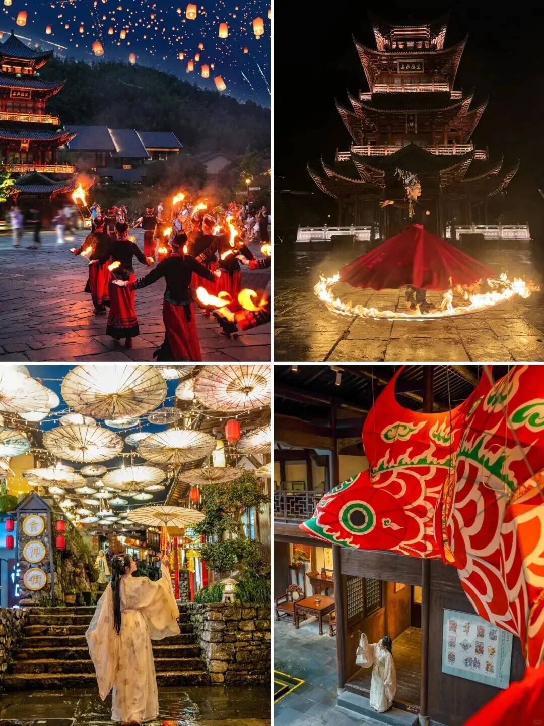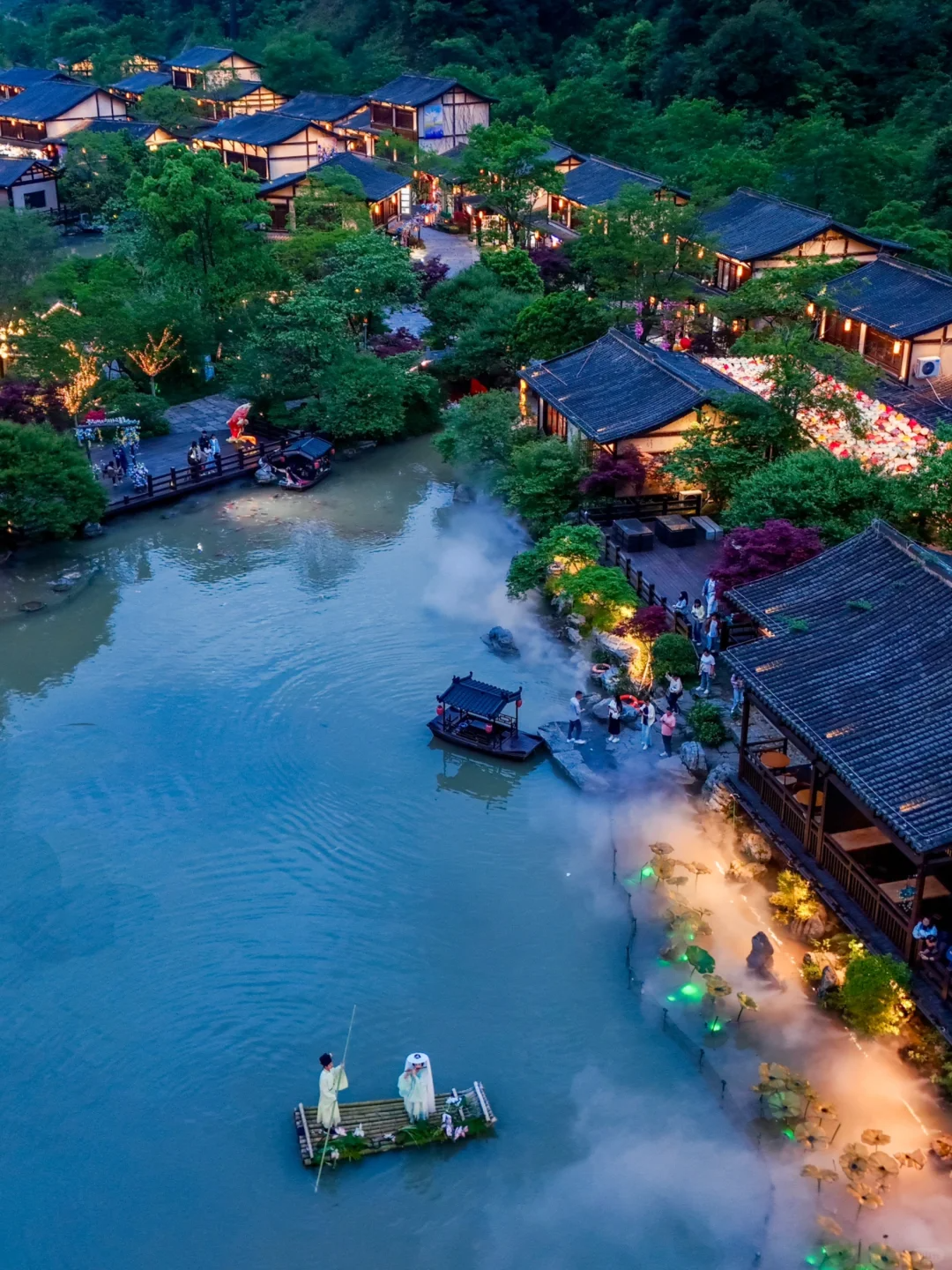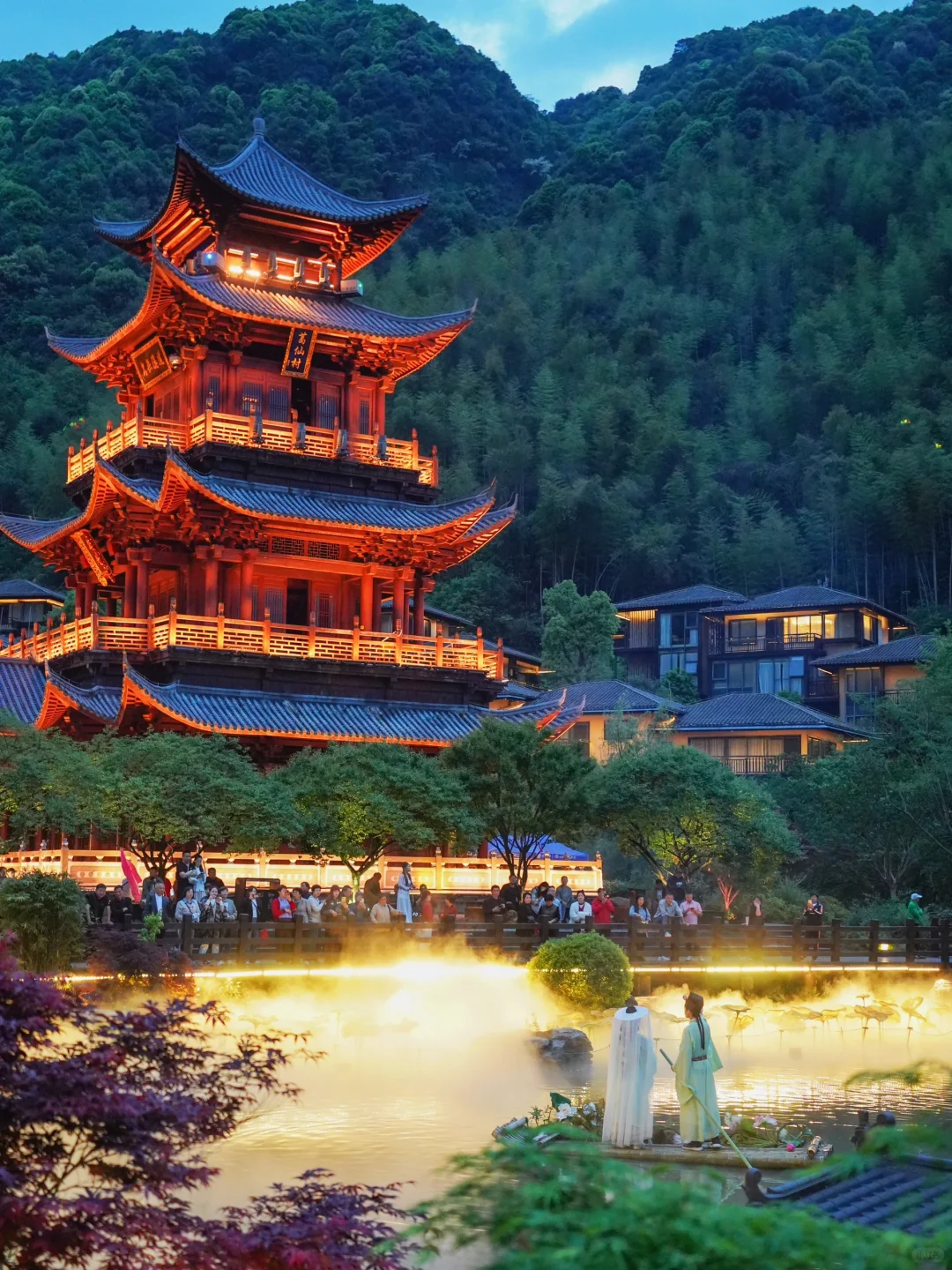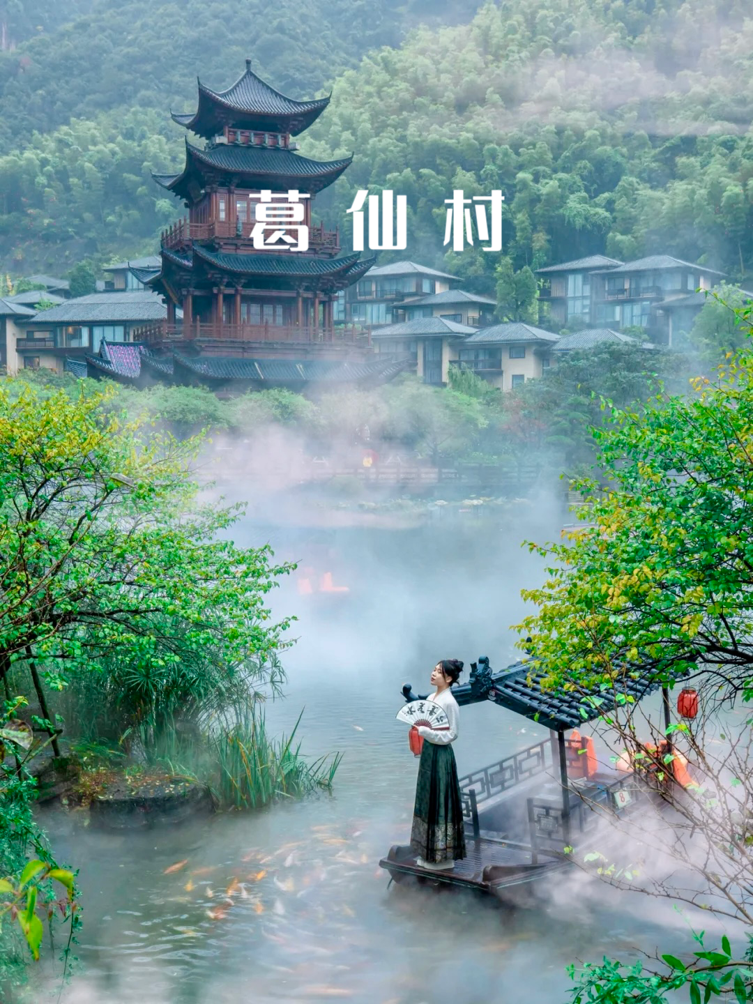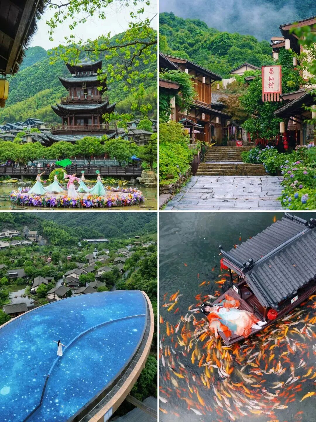 - 下午 适时前往【葛仙村】游览。这里宛如世外桃源般的存在,青山绿水环绕,古村建筑错落有致。夜晚的葛仙村更是别有一番风味,灯火辉煌,仿佛穿越回了古代的仙侠世界。