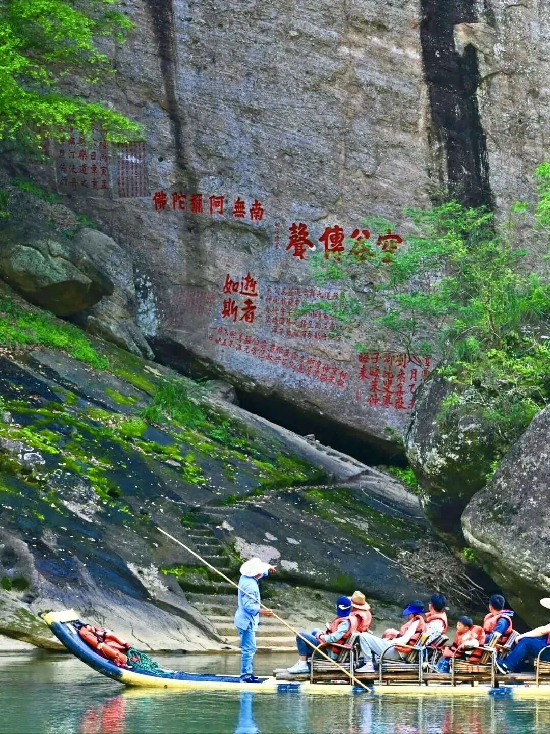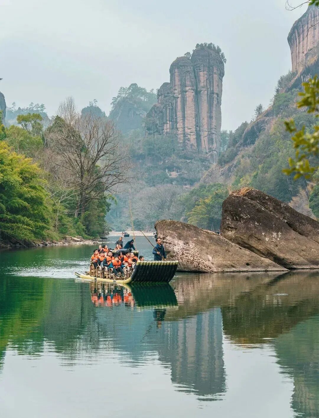 - 下午 我们体验九曲溪竹筏漂流(竹筏体验需要提前官网预约,如想体验请关注放票时间抢票;竹筏时间会根据当天预订的实际情况为准,约90分钟)坐筏观山,极目皆图画,丹山、碧水、绿树、蓝天、白云相映成趣,呈现出武夷山大自然五彩缤纷的色彩美。竹筏漂流结束后可游览武夷宫、仿古宋街等景点。