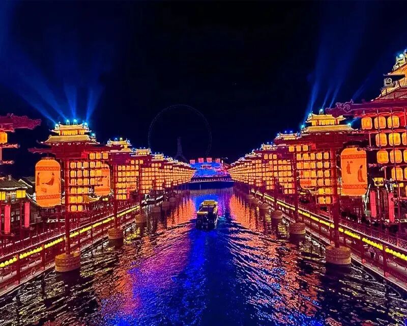 唐山的河头老街惊现“大唐盛世”太震撼了!河头老街的夜色格外绚丽,璀璨灯光与美轮美奂的建筑交相辉映,水舞秀、唐王东征情景剧、杂技等节目精彩上演,一处处以唐山历史文化和百年河头底蕴为基础设计的景点,引得游人流连忘返。