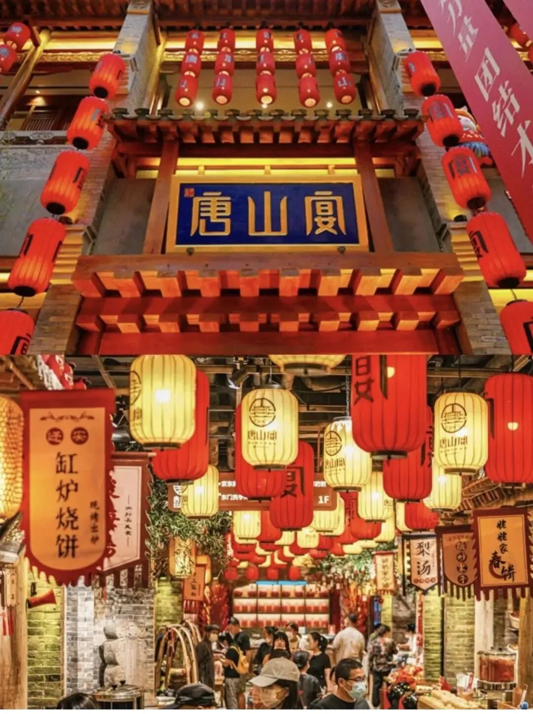 一层有各种特色小吃和网红墙,满足你的味蕾和拍照欲望;二层是怀旧景观,带你穿越时光;随处可见的小场景,遥记图书馆、所心胡同、老物件陈列区、本地方言文化墙、燕山书院、玫瑰瀑布花墙、撒欢儿乐园、祈福长廊,每一处都值得你去探索。无论是本地人寻找儿时情怀,还是外地人寻找唐山味道,唐山宴都是绝佳的选择;
