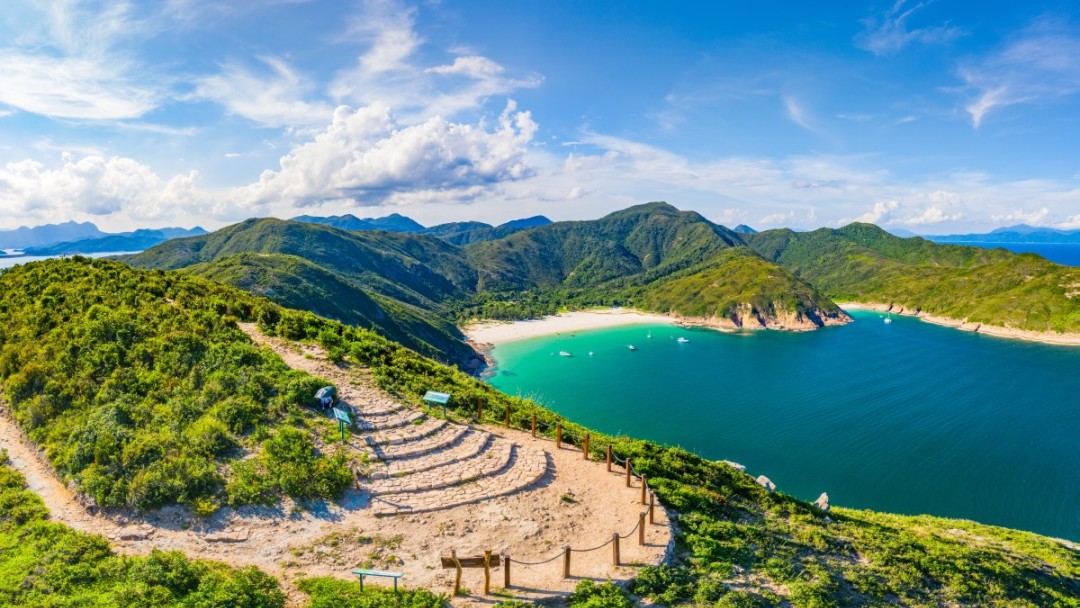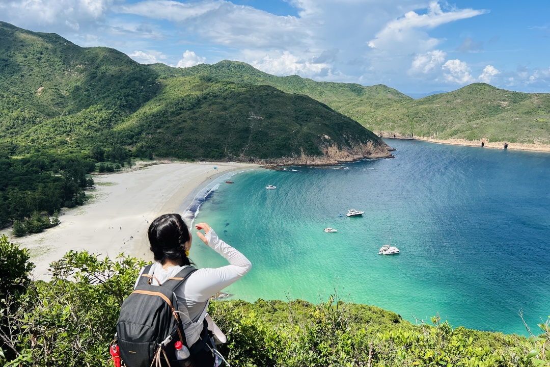 下午途径咸田湾,面前是一派宁静的海滩自然风光与别具风情的渔村小景,更可远眺蚺蛇尖。米白色沙滩与玻璃海扑面而来,有山路也有沙滩路,后基本以山间小道为主,全程会经过西湾、咸田湾两个海湾。