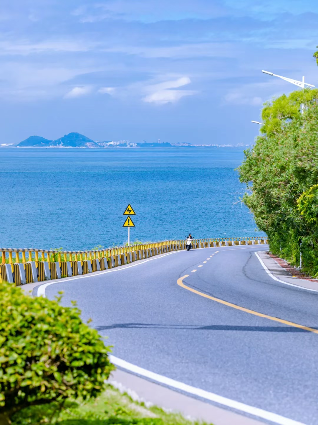 乘车穿越跨海大桥,环岛路蜿蜒山海之间,左手是苍翠的风车阵,右边是蓝天白云的海岸线。这个宝藏海岛等你来打卡!分分钟拍出大片。