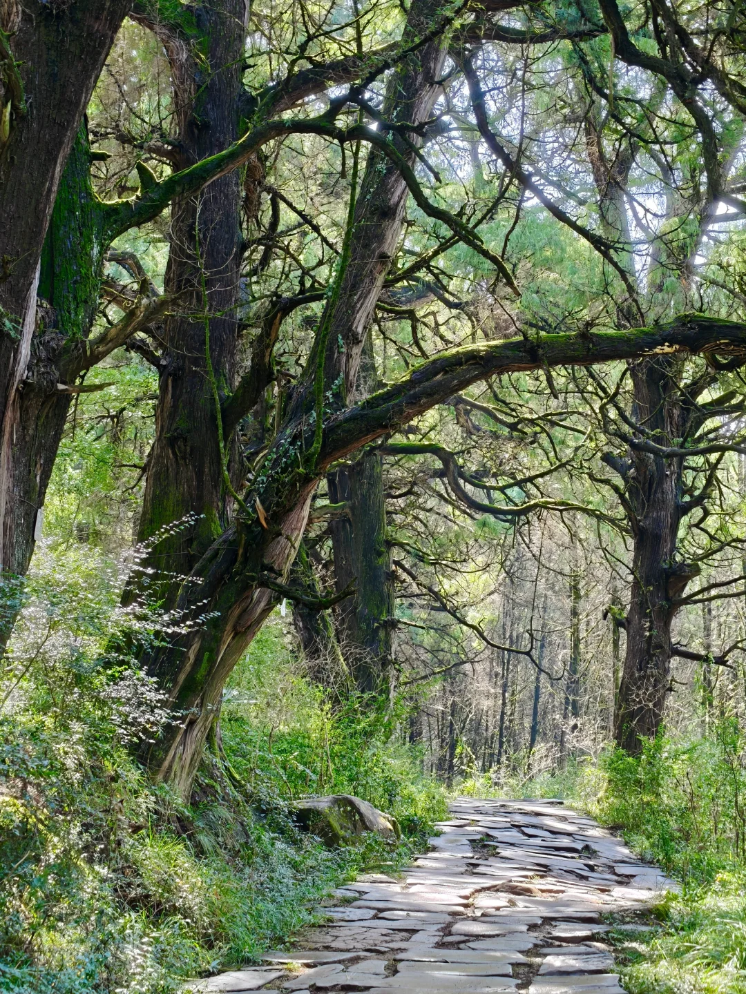它们见证了秦惠文王灭蜀的战旗,目睹了张飞率部植柏的汗水(虽为传说,但寄托了后人的敬仰),也陪伴了唐明皇李隆基“雨淋铃”的仓皇入蜀 。· 行走其间,你会发现每一棵树都有自己的“身份证”。明代就开始实行的“官民相禁剪伐”和“点树交印”制度,至今仍在延续 。当你看到地方官在离任时,将这一株株古柏像移交库银一样清点给下任时,你会明白什么叫敬畏自然,什么叫文脉传承。· 光影斑驳,风过松涛。在这里徒步,你不再是赶路,而是在检阅一支列队千年、等候你多时的绿色仪仗。