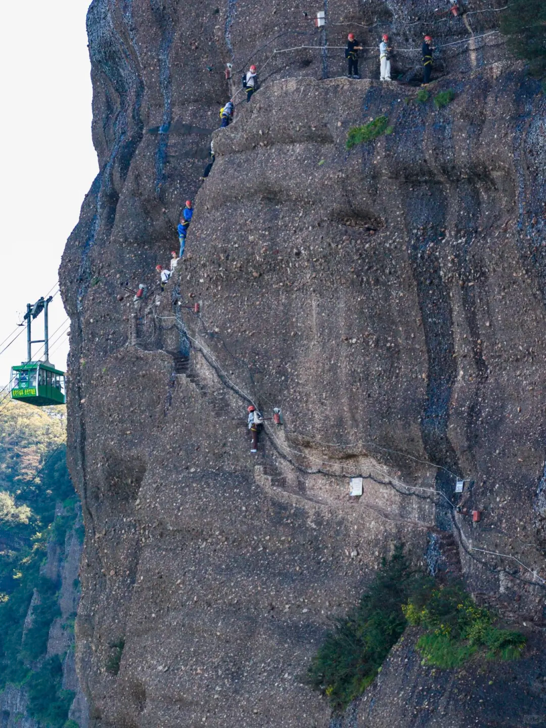 猿猱道是剑门关景区内最惊险的登山步道。全长446米,呈“之”字形蜿蜒于陡峭崖壁,最高落差达120米,路面最窄处仅有15厘米,全程无护栏。游客需完成血压测试后佩戴安全绳、头盔,沿岩壁攀爬。其名称源自李白《蜀道难》中“猿猱欲度愁攀援”的诗句。