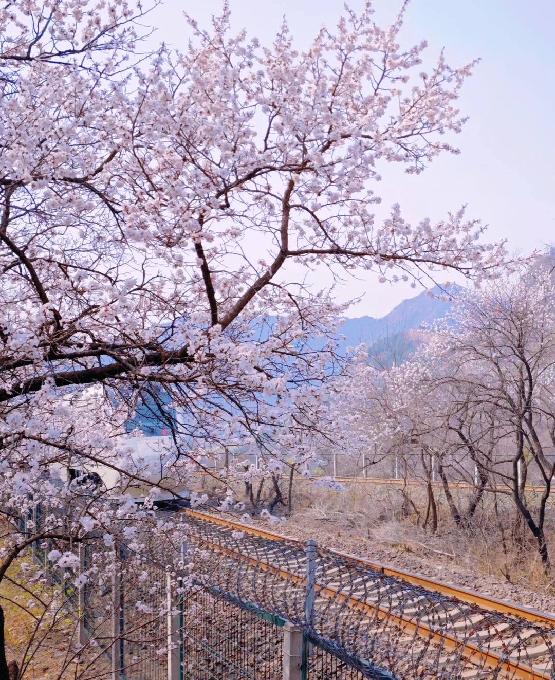 这里的花海列车美到爆炸!在居庸关长城到八达岭长城之间,梨花、桃花、各种花朵竞相开放,在居庸叠翠伴桃杏的日子里,一趟白色的列车穿越花海。还在羡慕日本火车穿行在开满樱花的铁轨上吗?咱们家门口也有这样一条美丽的线路每年3月底4月初的时候,北京居庸关长城脚下的花海盛开,沿途枝桠花正盛,春正好。