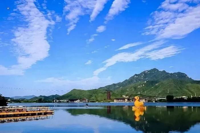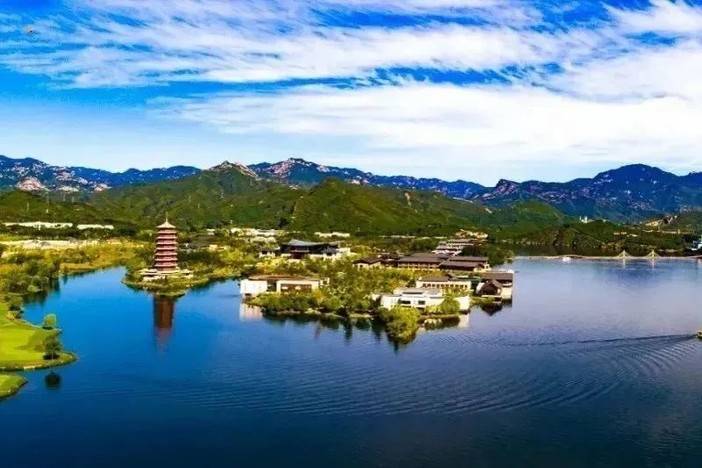 雁栖湖因截雁栖河水而成,水量丰富,水质清澈,常有大雁、天鹅等珍禽候鸟在此栖息,故称雁栖湖。湖区气候宜人,湖水清纯碧蓝,是开展水上娱乐活动和休闲度假的理想场所。