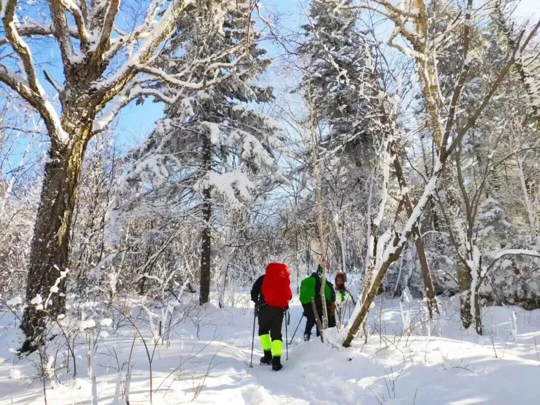 徒步穿越雪谷-雪乡 这是一条特别刺激兼美不胜收的线路。徒步大约13公里,用时4~6个小时,穿越到海林的双峰林场。起点东升高程约400米,穿越最高点约1200米,终点双峰高程约800米。