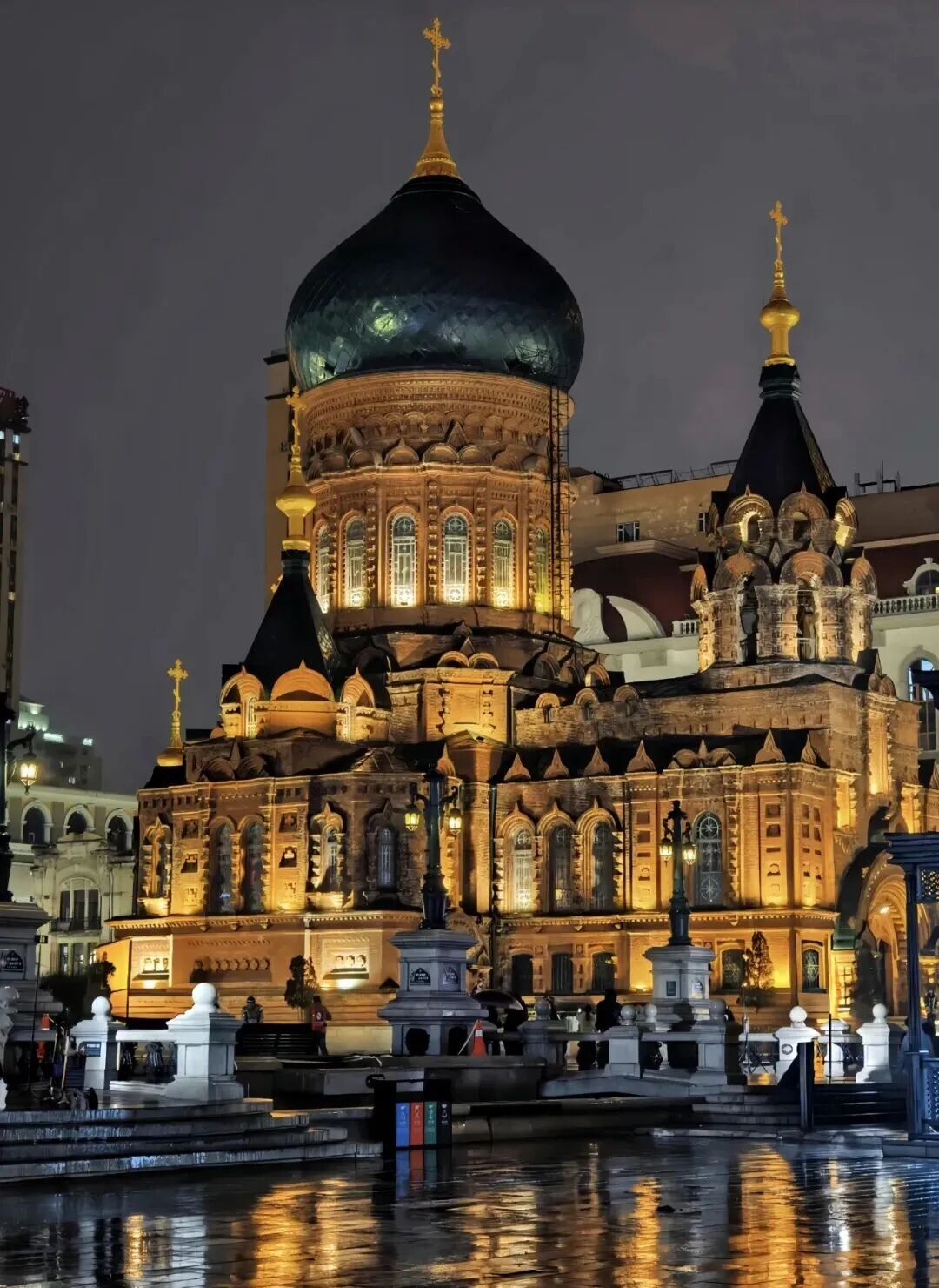 圣索菲亚大教堂始建于1907年3月,原为沙俄东西伯利亚第四步兵师的随军教堂,1932年重建,成为远东地区最大的东正教教堂,以其精美的建筑艺术和丰富的历史文化内涵享誉中外,教堂巍峨壮美,具有浓郁的异国情调,现为哈尔滨市建筑艺术馆。