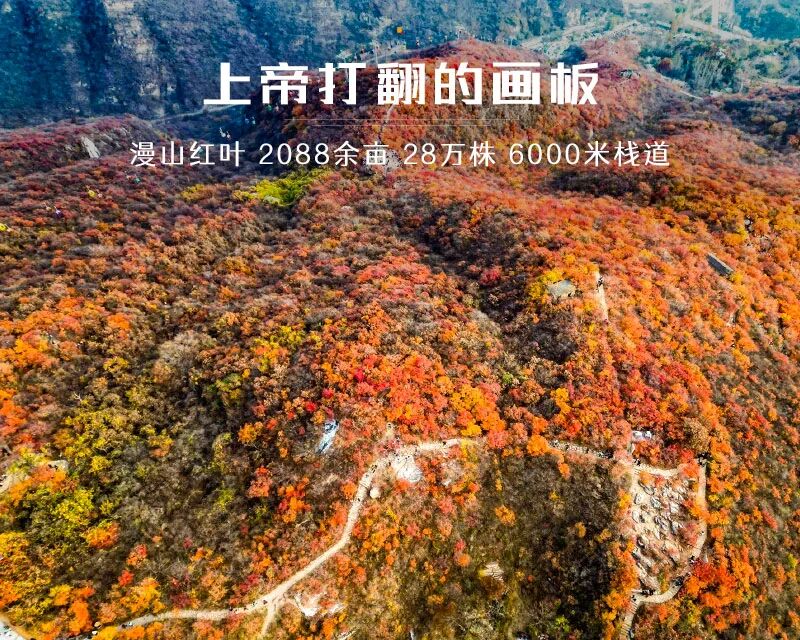 万山红遍,层林尽染 红叶绿中游,彩练当空舞 国家地理推荐 『2019最佳红叶观赏地』 《2019年第八届坡峰岭红叶节》 2000余亩 20万株 6000米栈道