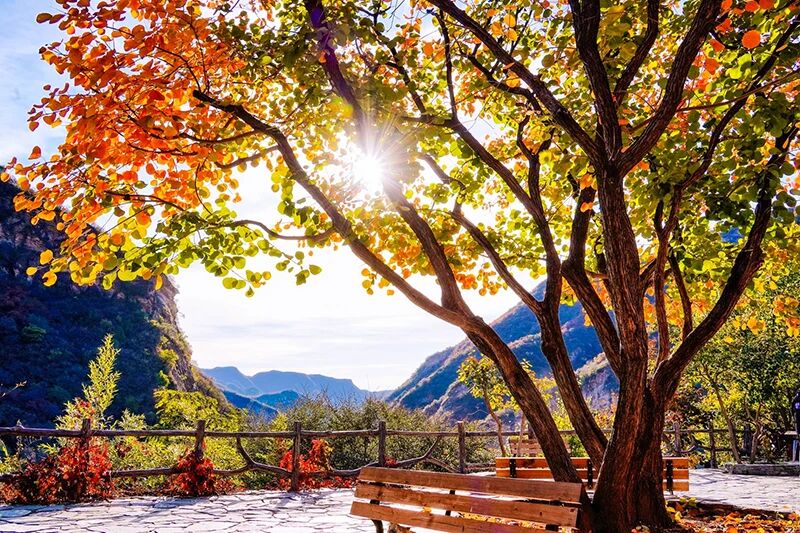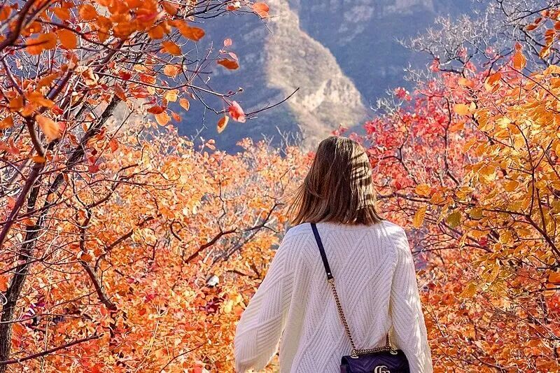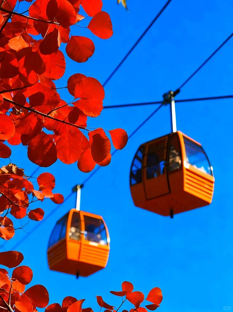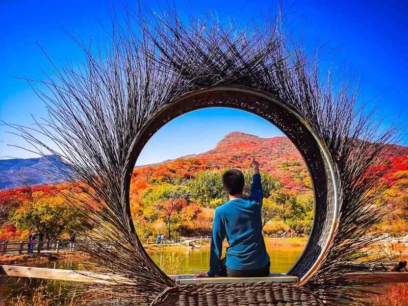 在红叶绝佳处以创意造型设计拍照打卡框,精选绝美的中国红角度,随手就能拍出专属于你的秋日大片!扮出超美的pose,在动人的黄栌树下,将每一片中国红统统摄进心灵的记忆深处。
