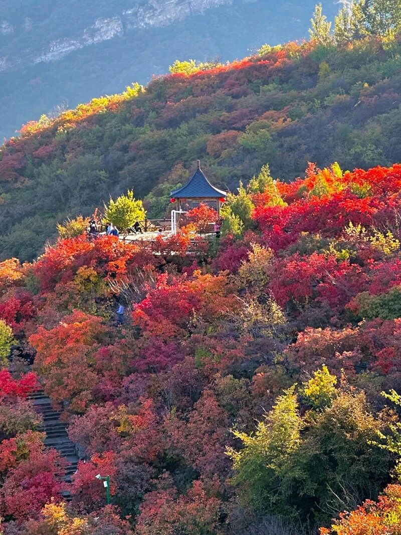 慕名而来的游人,穿行在山路里,似乎早已和那浓淡交映的红叶融为了一体,那愉悦也随灿烂的红叶洋溢在脸上。