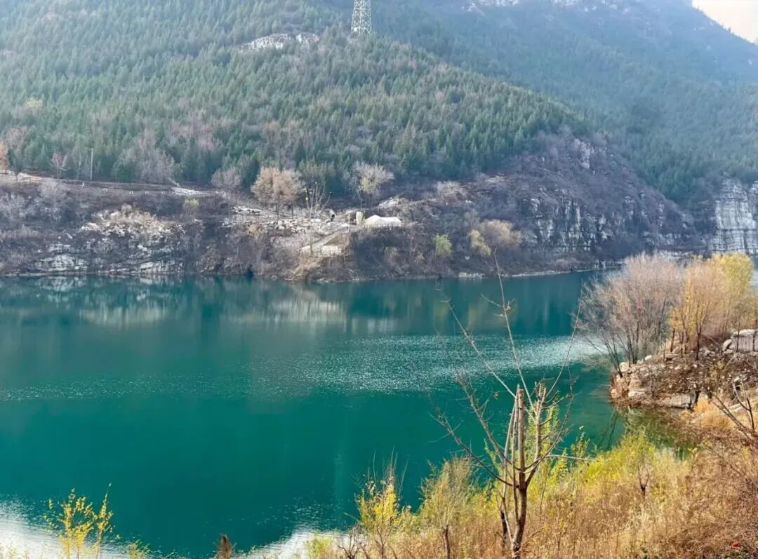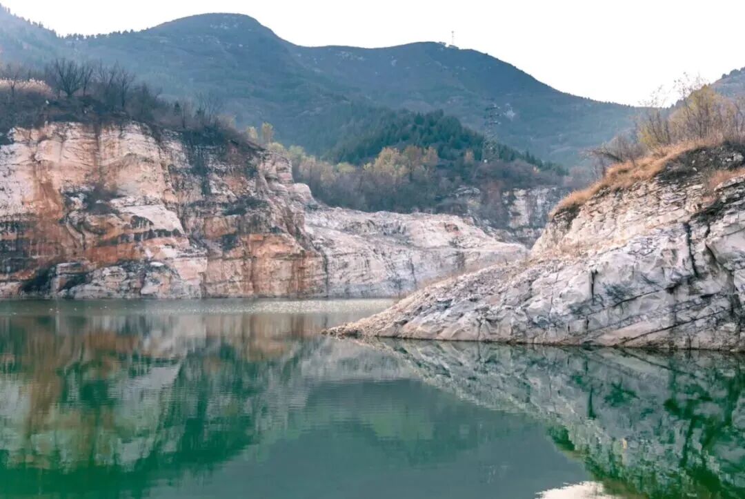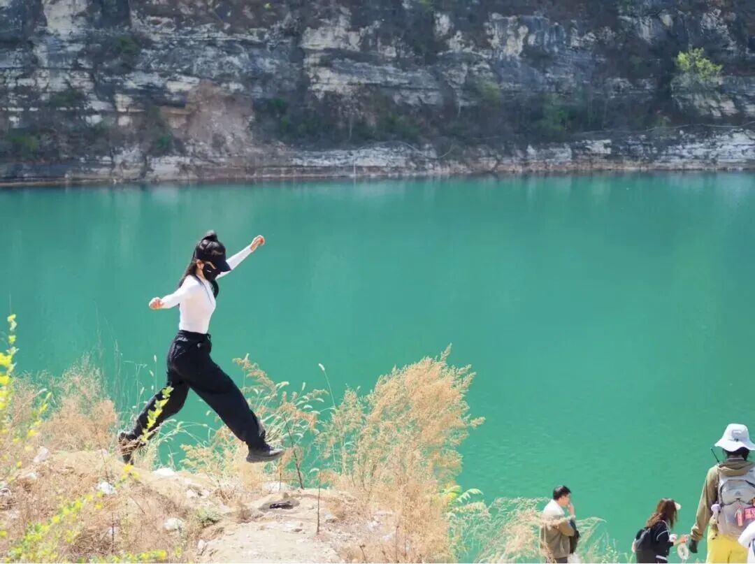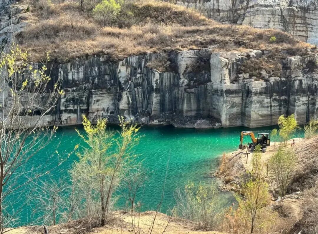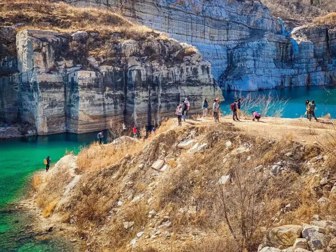 10:30|到达徒步起点,在领队带领下徒步前往翡翠湖。翡翠湖原来是有七眼泉,汉白玉之所以通体洁白无瑕、质地莹润细腻,是因为千百万年来,它都泡在水里。而随着大型无节制的开采,七眼泉中的五眼随之都干涸了,在矿区封停后不久,已经干涸的泉水又开始流淌出清泉,才有今日的翡翠湖美景!距离矿坑不远,在村北的山坡上有一座古塔,该塔建于辽代,坐北朝南,为八角七级密檐砖塔,通高15米。