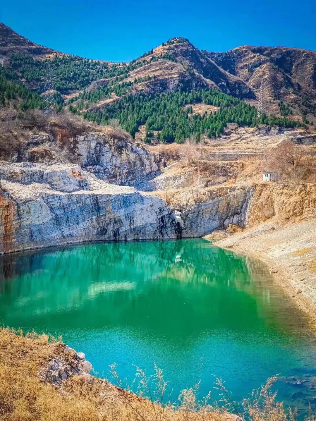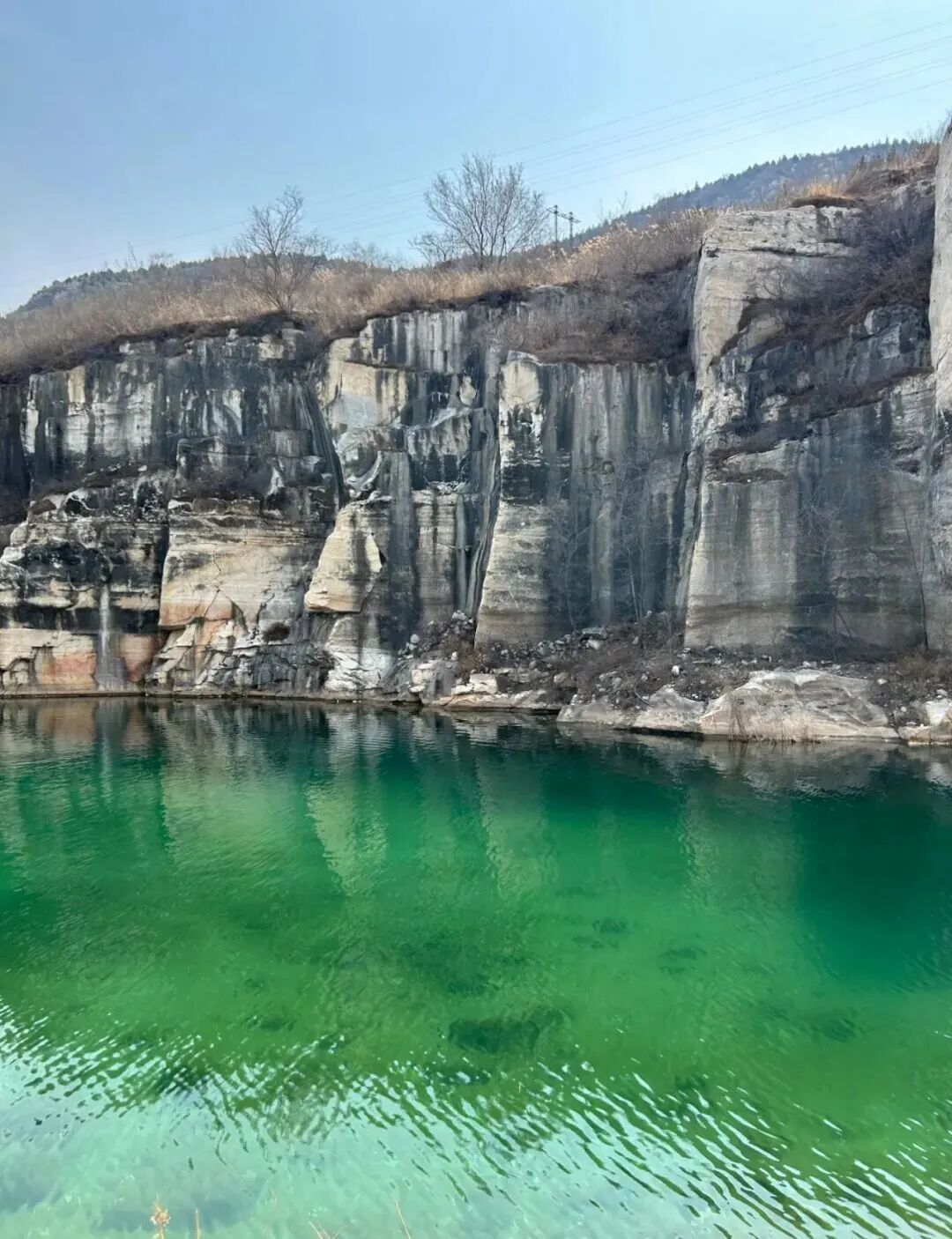 翡翠湖就是当年汉白玉的人工矿坑,因为矿石中含有矿物质,所以在阳光的照射下湖水呈翠绿色。在房山区大石窝镇高庄村的后山里,有个废弃的矿坑,原产汉白玉,老矿坑里含有多种矿物质,现积水在阳光下呈现特有的碧绿色,被网友们誉称“翡翠湖”。