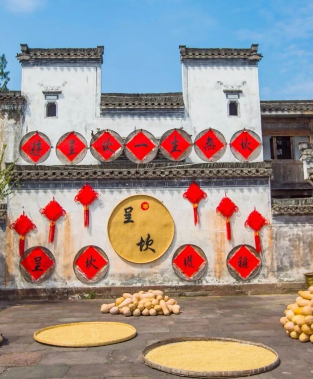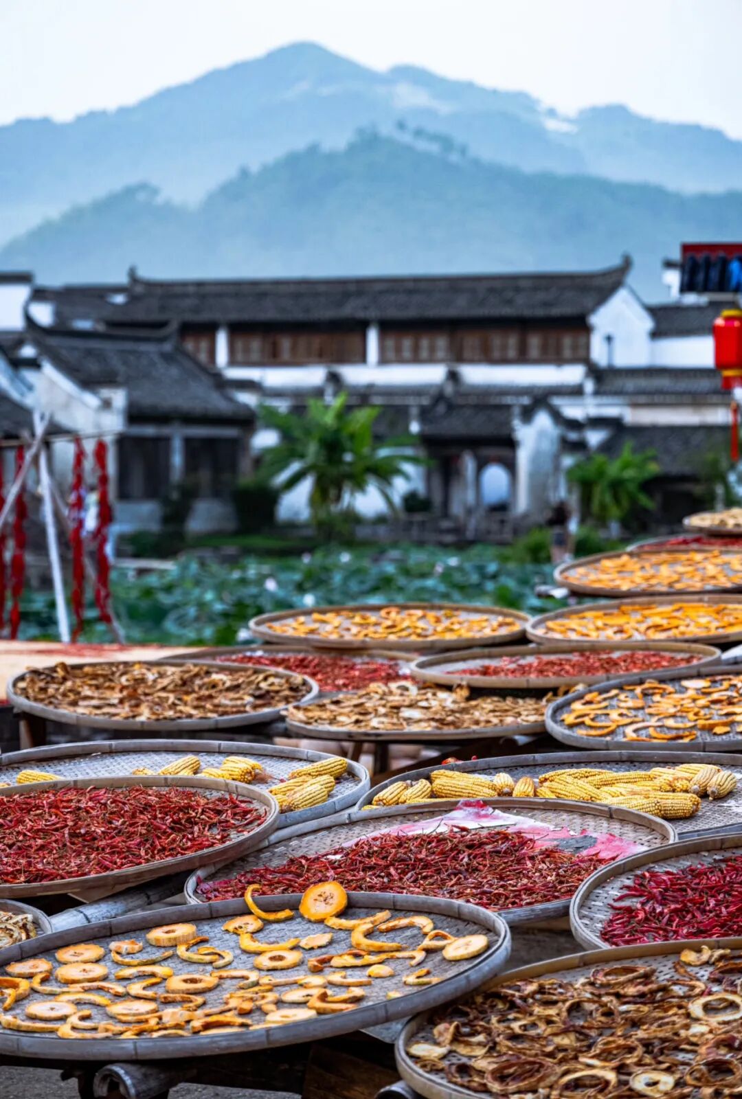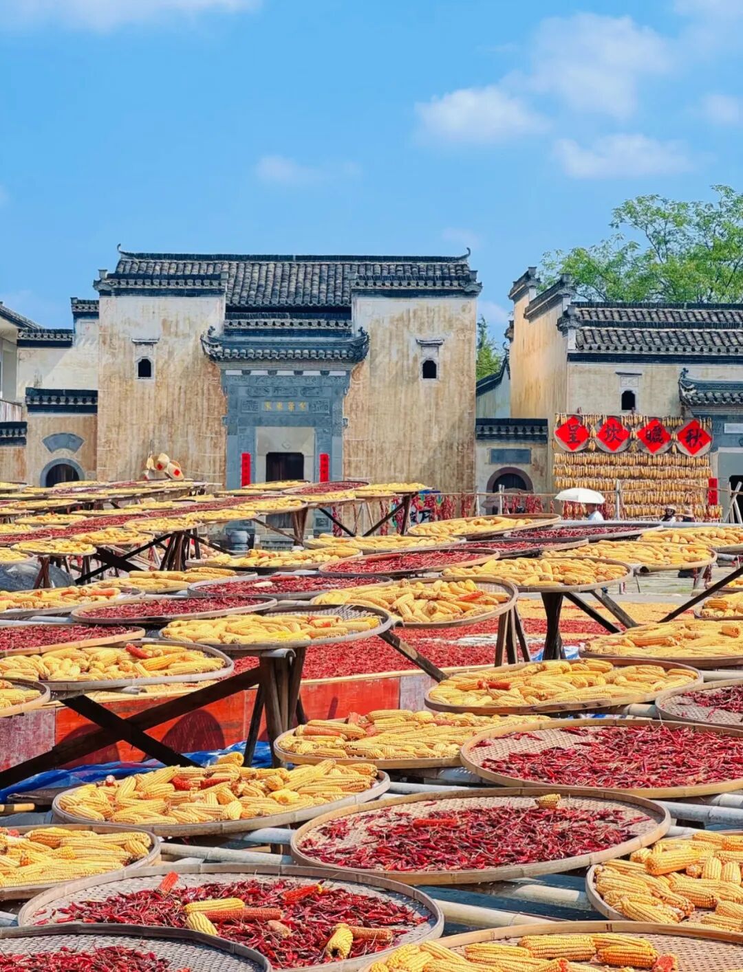 - 早餐后我们出发前往“中国风水第一村”呈坎。沿着河边的古道一路走去,可以看到明代老宅燕翼堂、钟英楼、环秀桥、罗东舒祠等。秋天收获的季节,呈坎有着秋晒的传统,各色的农作物也构成美丽的画面。