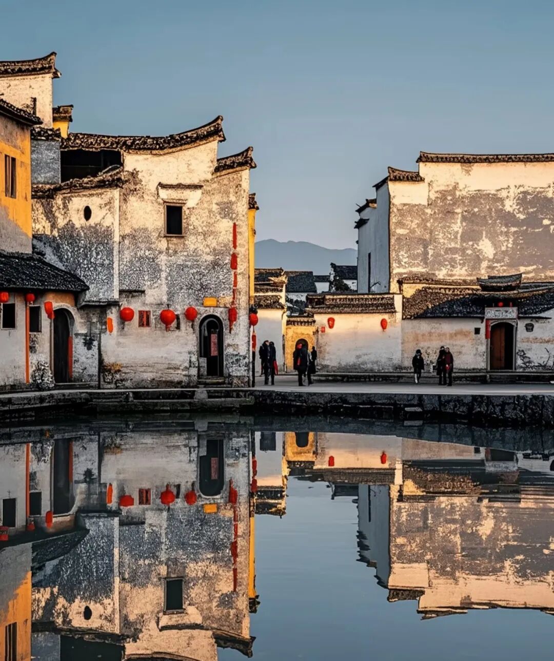 宏村宏村数百户粉墙青瓦、鳞次栉比的古民居群,同平滑似镜的月沼和碧波荡漾的南湖,雷岗上参天古木、民居庭院中的百年牡丹与探过墙头的青藤石木,构成一个完美的艺术整体。真可谓是步步入景,处处堪画,同时也反映着悠久历史所留下的广博深邃的文化底蕴。 小巷清幽宁静,月沼、南湖尚未被那些写生的学生所包围,拍照取景再合适不过。晨光熹微中,小山村炊烟渺渺,水面光影动人,清晨的宏村,犹如一个最美的梦……