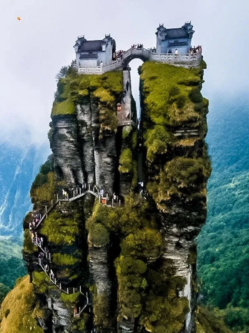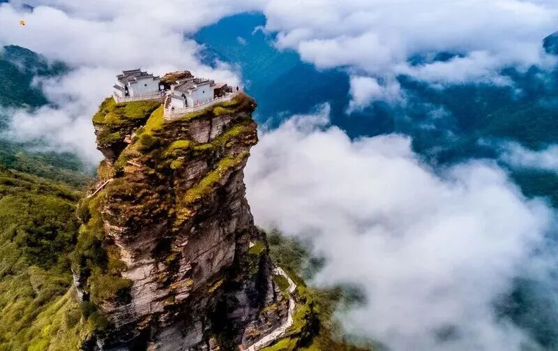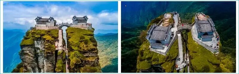 随后下金顶景区观梵净山标志景物—蘑菇石、九皇洞、老鹰岩、万卷书、翻天印(如果还有体力的还可以登海拔2477米的老金顶,观燃灯癜、般若泉等景点)。