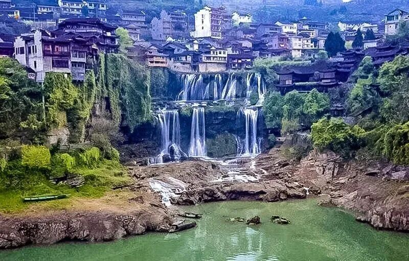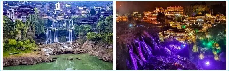 本名王村,是拥有两千多年历史的古镇,因宏伟瀑布穿梭其中,又称“挂在瀑布上的千年古镇”。与龙山里耶镇、泸溪浦市镇、花垣茶峒镇并称“湘西四大名镇”,又有酉阳雄镇、“小南京”美誉。电影《芙蓉镇》在此拍摄,遂更名为“芙蓉镇”。国家AAAA级景区。