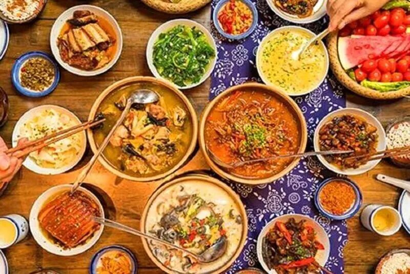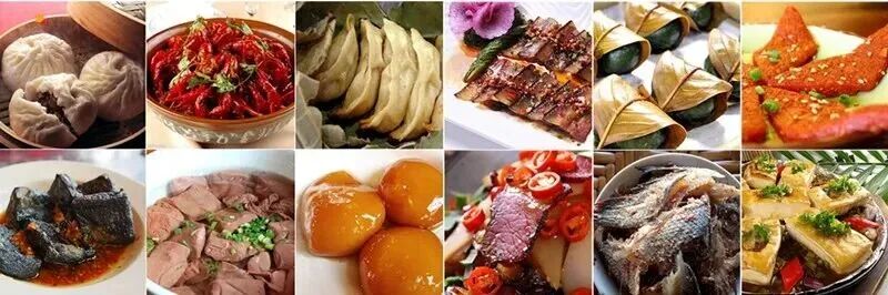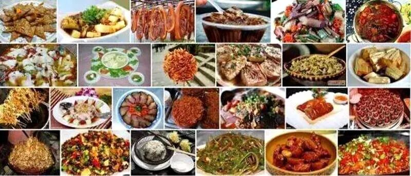 血粑鸭,凤凰社饭,隔年熏腊肉,板栗炖鸡,剁椒鱼头,糍粑鱼,湘西野菜,土家合渣,酸鱼,罐罐菌,香草鸡,凤凰竹筒饭……