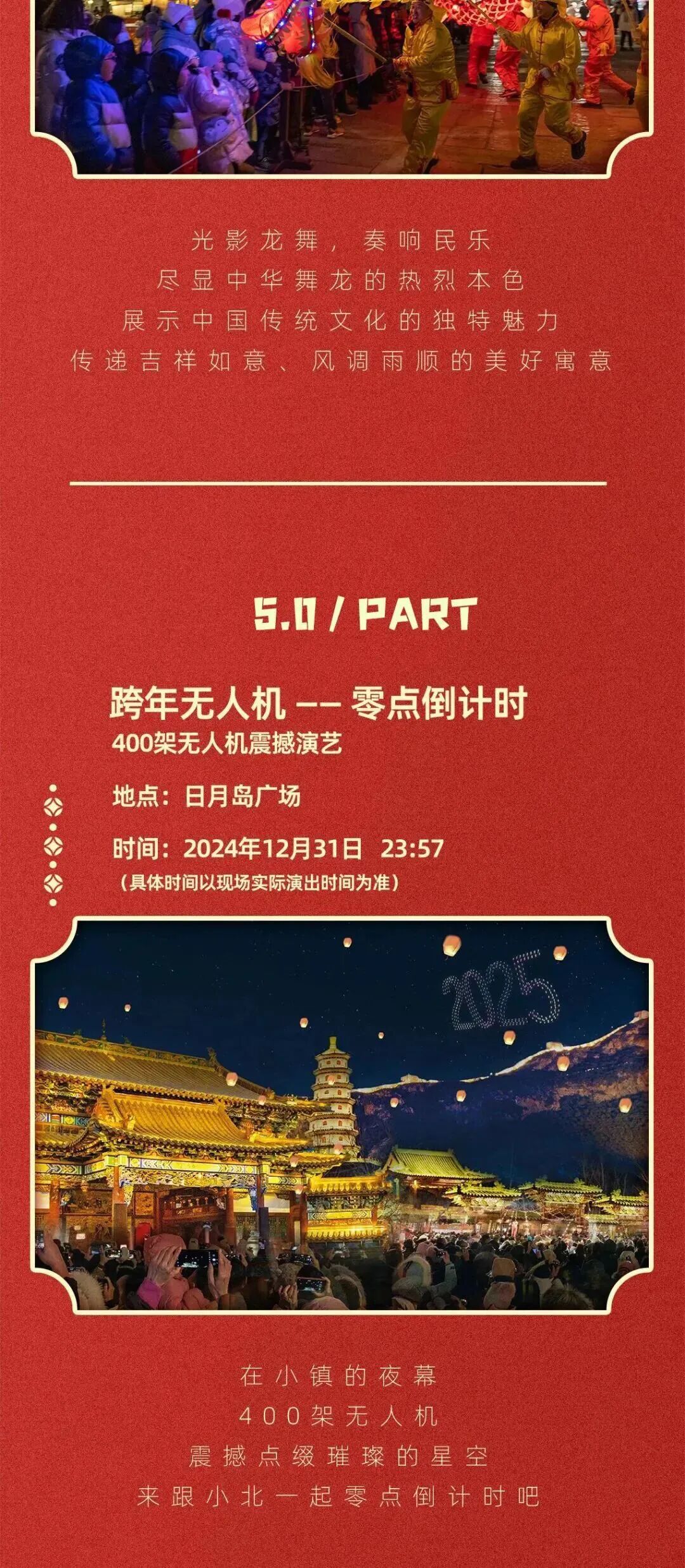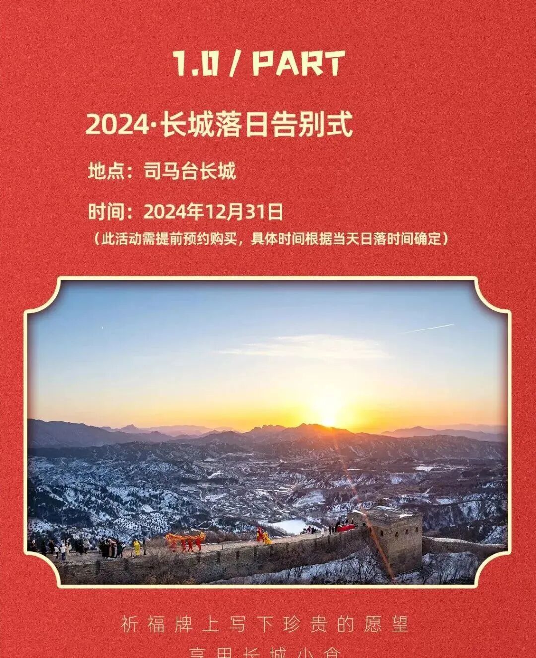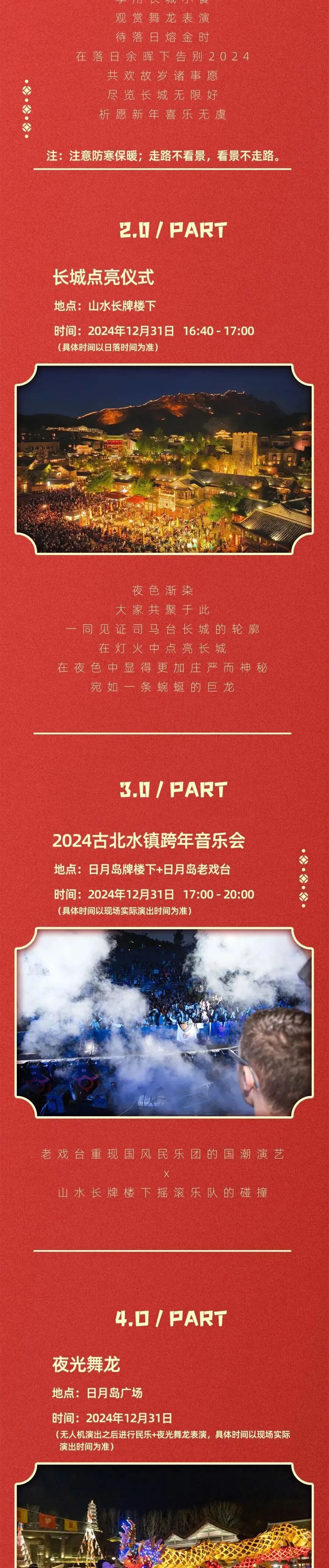 ★观长城日落、参加古北水镇跨年音乐会、观看无人机表演等活动