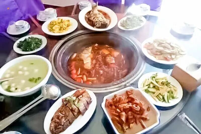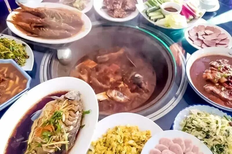 它采用活鱼烩制而成。加以当地的把蒿、大枣、枸杞等十多种农家精制酱调制。灶台鱼顾名思义是赋有农家风情灶台铁锅,加以柴火慢炖独特的秘诀精制而成,是一道经久不衰、营养丰富的美味。