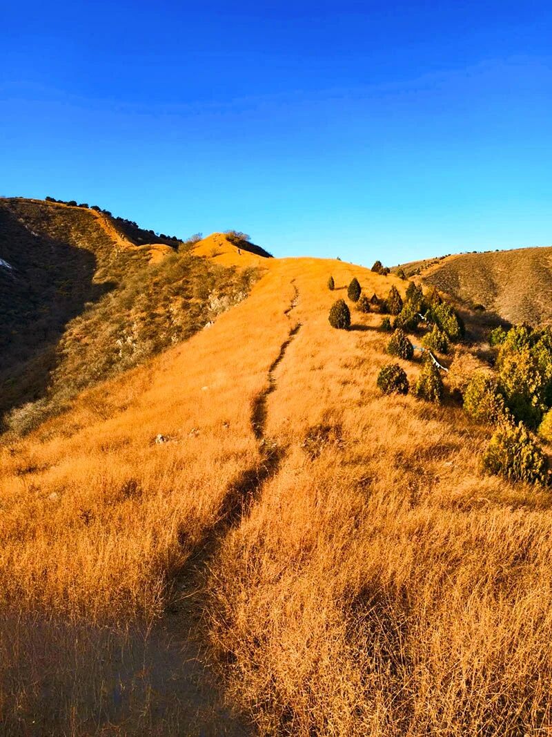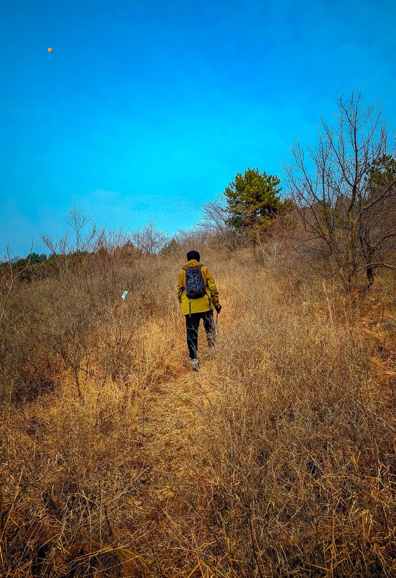 远处的群山,空旷的美感,出来徒步就是这样放空的舒适~在山脊一路行进,蓝天白云青松荒草,别有一番滋味~近处的荒草、青松,远处的村庄、湖泊,再远处的山峦、湖泊,再再远处的远山、天空,这样丰富的景色,只有自然中才会有。