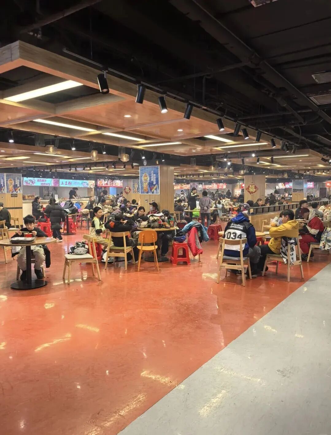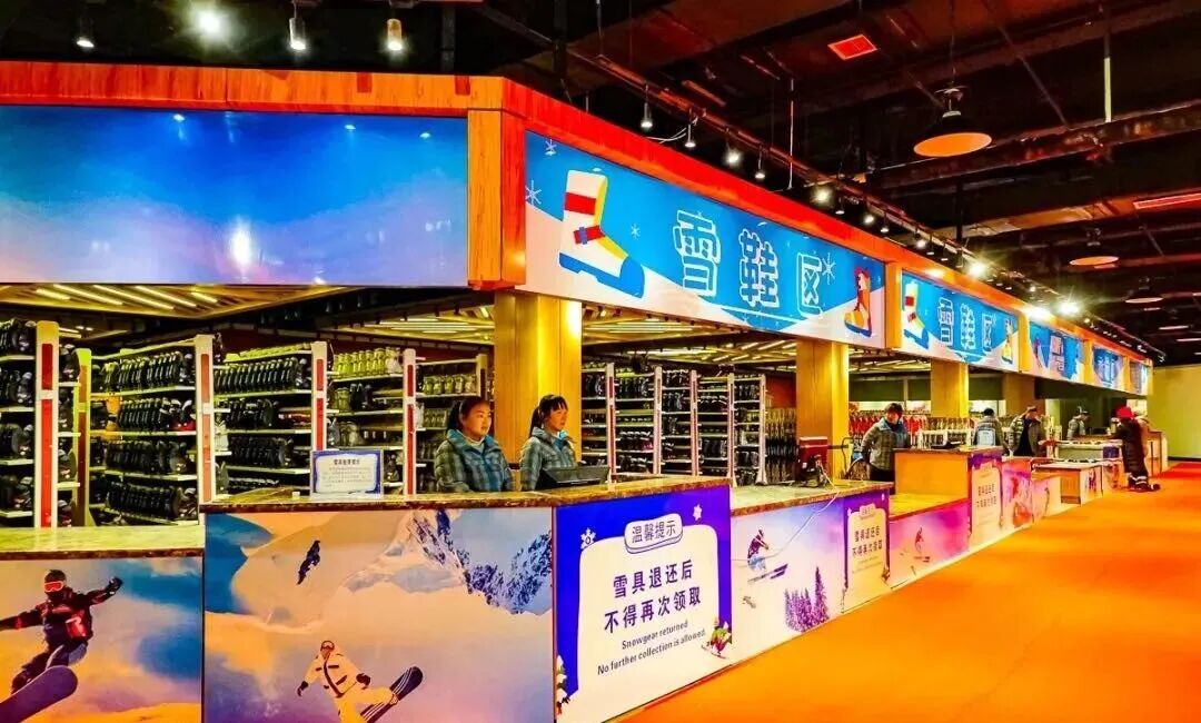 玉龙湾雪具大厅为保证客人顺畅快捷办理滑雪,将雪具大厅分为双板区、单板区、雪鞋区、雪服区,四个大区。为满足广大滑雪爱好者需求玉龙湾滑雪场配备了双板2500余套;单板500余套;雪服1000余套;儿童雪服500余套;头盔500余个;雪镜450余副;存衣柜3000余个。 超大豪华的用餐环境,各地特色、美食小吃满足你的味蕾,给您提供美味的滑雪补给。