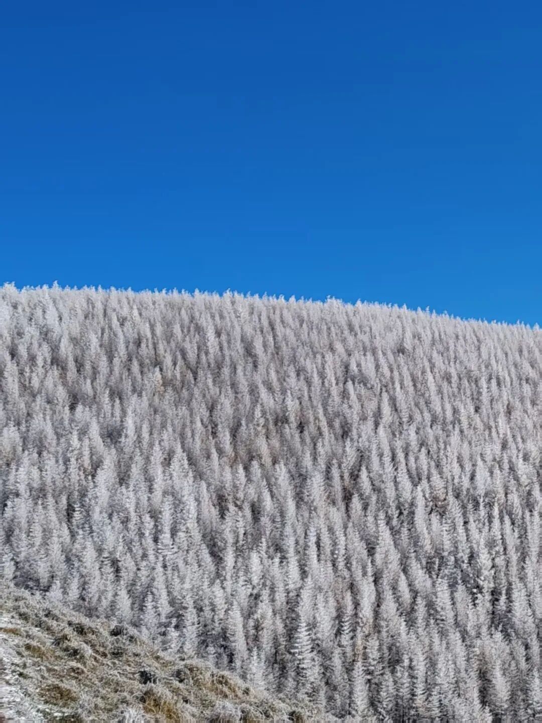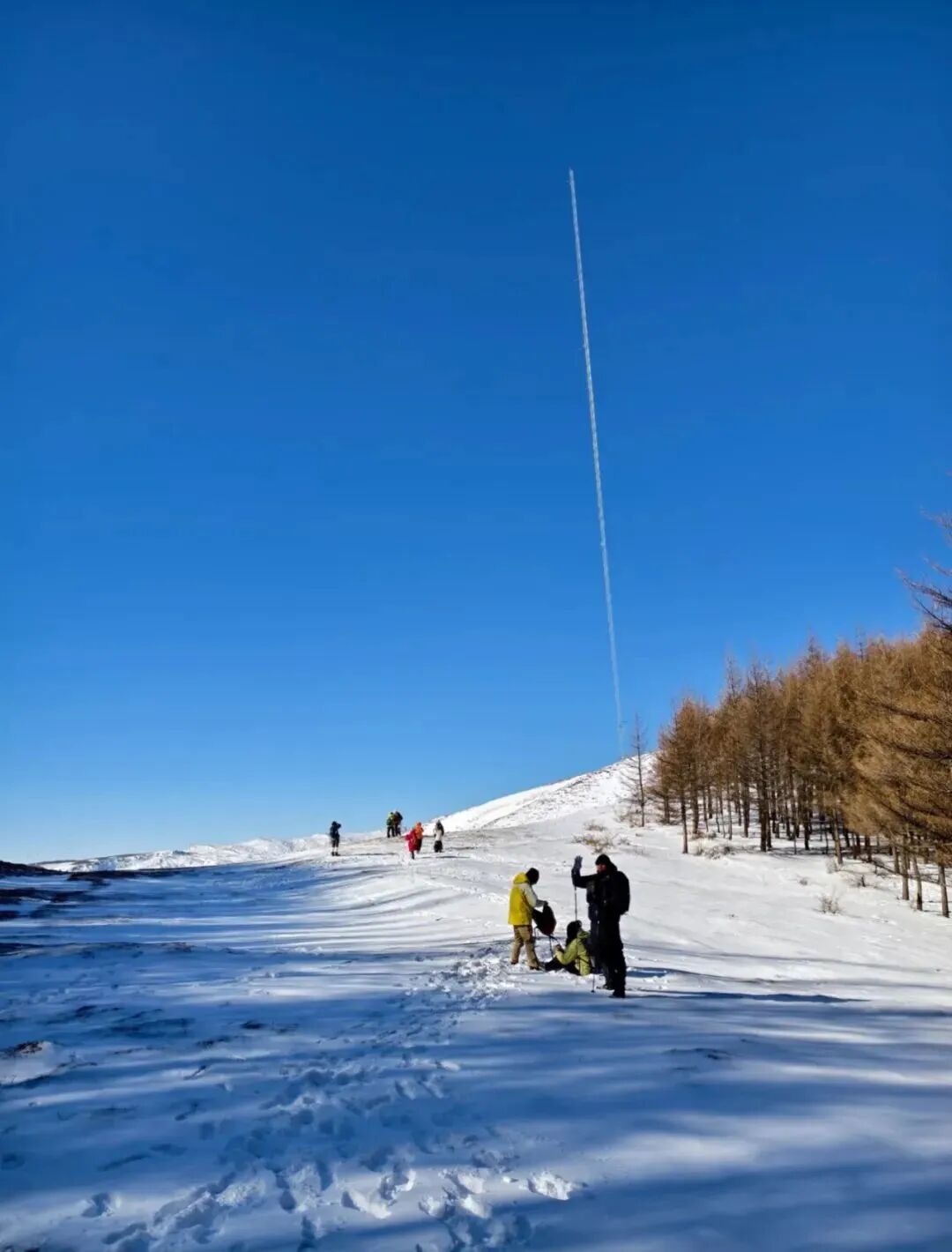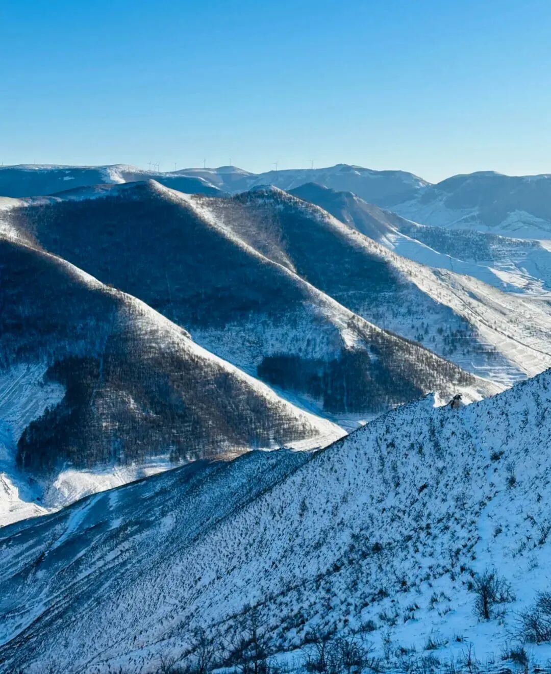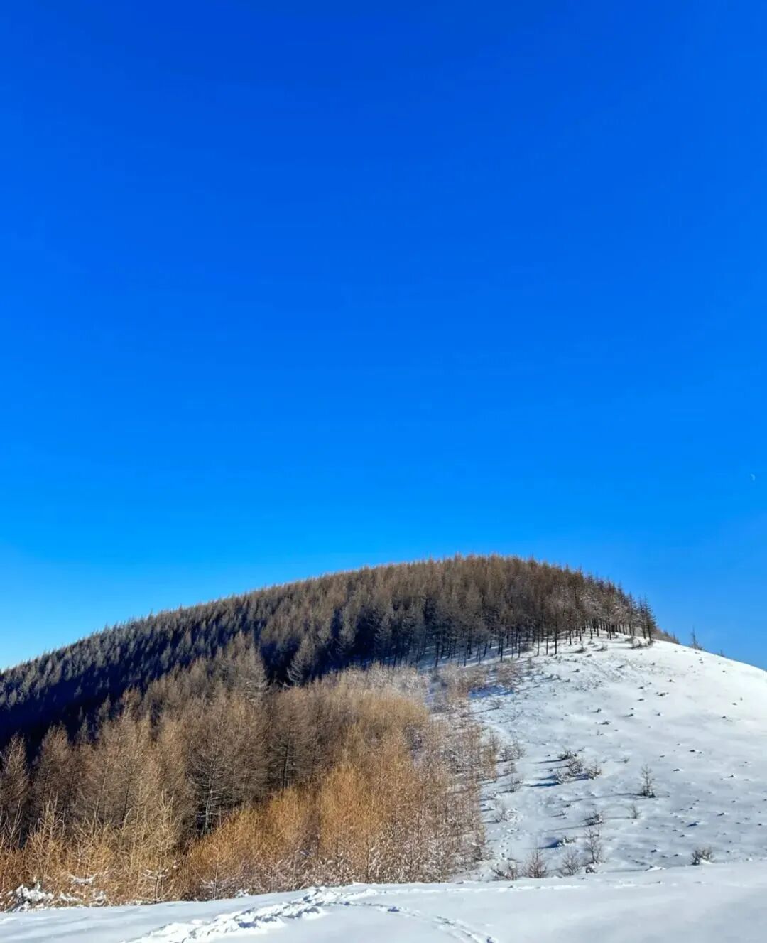 麻田的环穿只有10公里,难度不大,小天山山顶海拔2122米,麻田岭山脊向东连接东甸子梁,站在山项远望茶山,清浙可见,东南距离东甸子梁更是咫尺之遥,蓝天、白云、积雪,一幅天然的油墨画。