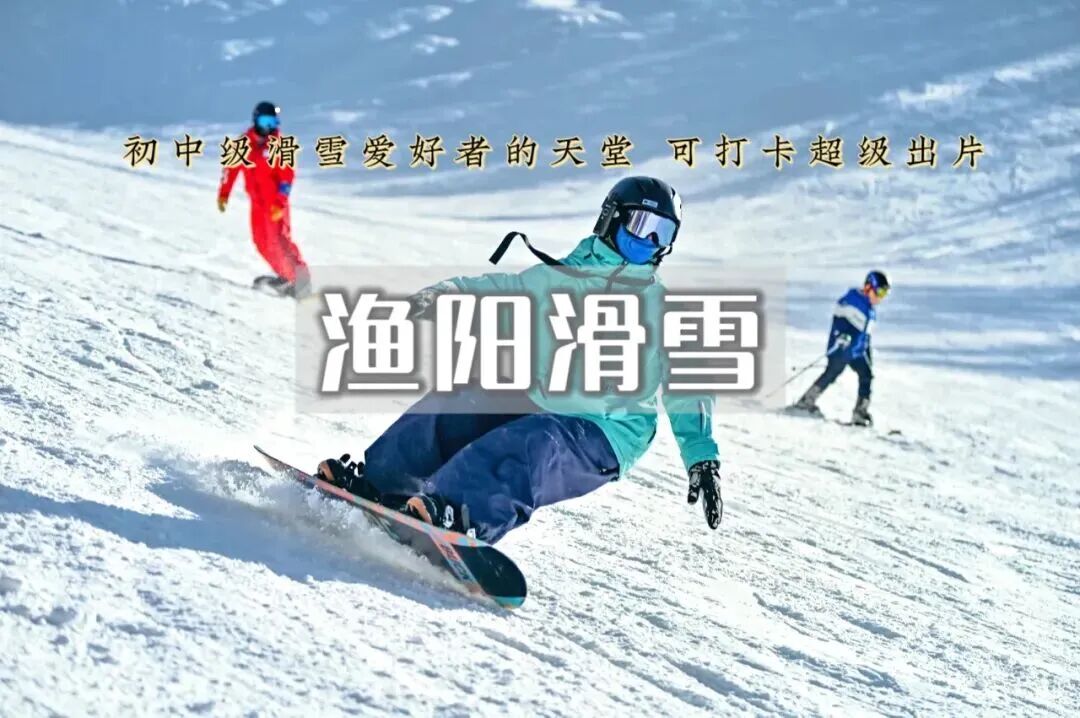 渔阳国际滑雪场4A景区 渔阳国际滑雪场位于北京市平谷区东高村镇大旺务村,占地6000余亩,是集雪上运动、生态园餐厅、住宿、拓展训练、会议、休闲、采摘于一体的综合滑雪旅游胜地。雪场已建成1600米的高级道2条,700米的中级道3条,600米的初级道2条,300米的教学道1条,配有惊险刺激的雪圈道2条、雪地摩托道1条,单板公园1个,儿童乐园1个,并配备了4人缆车1条,双人座椅缆车1条,大小拖牵6条,魔毯3条,雪道运力能够满足高、中、初级不同滑雪水平人群的选择。